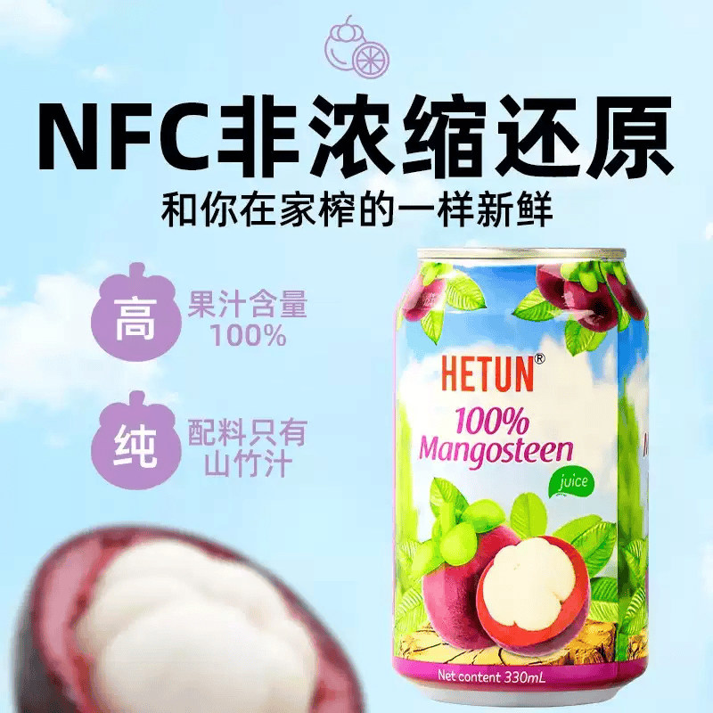 越南进口HETUN山竹汁330ml*6罐NFC非浓缩100%0脂肪果汁饮料囤货
