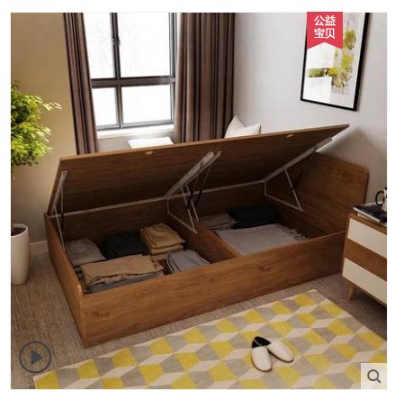 实木气动储物床 北欧风小户型卧室高箱收纳床 大容量简约床