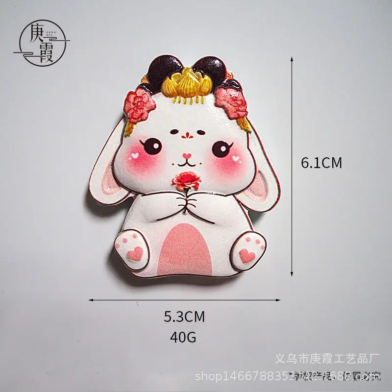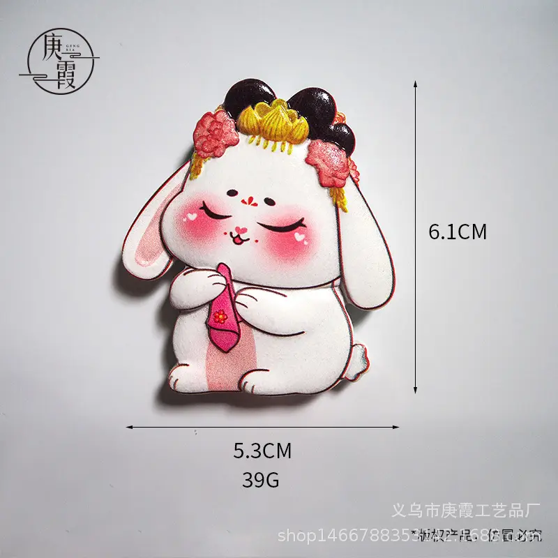 中创意可爱兔子磁力贴树脂立体唐风礼品冰箱贴装饰吸铁石