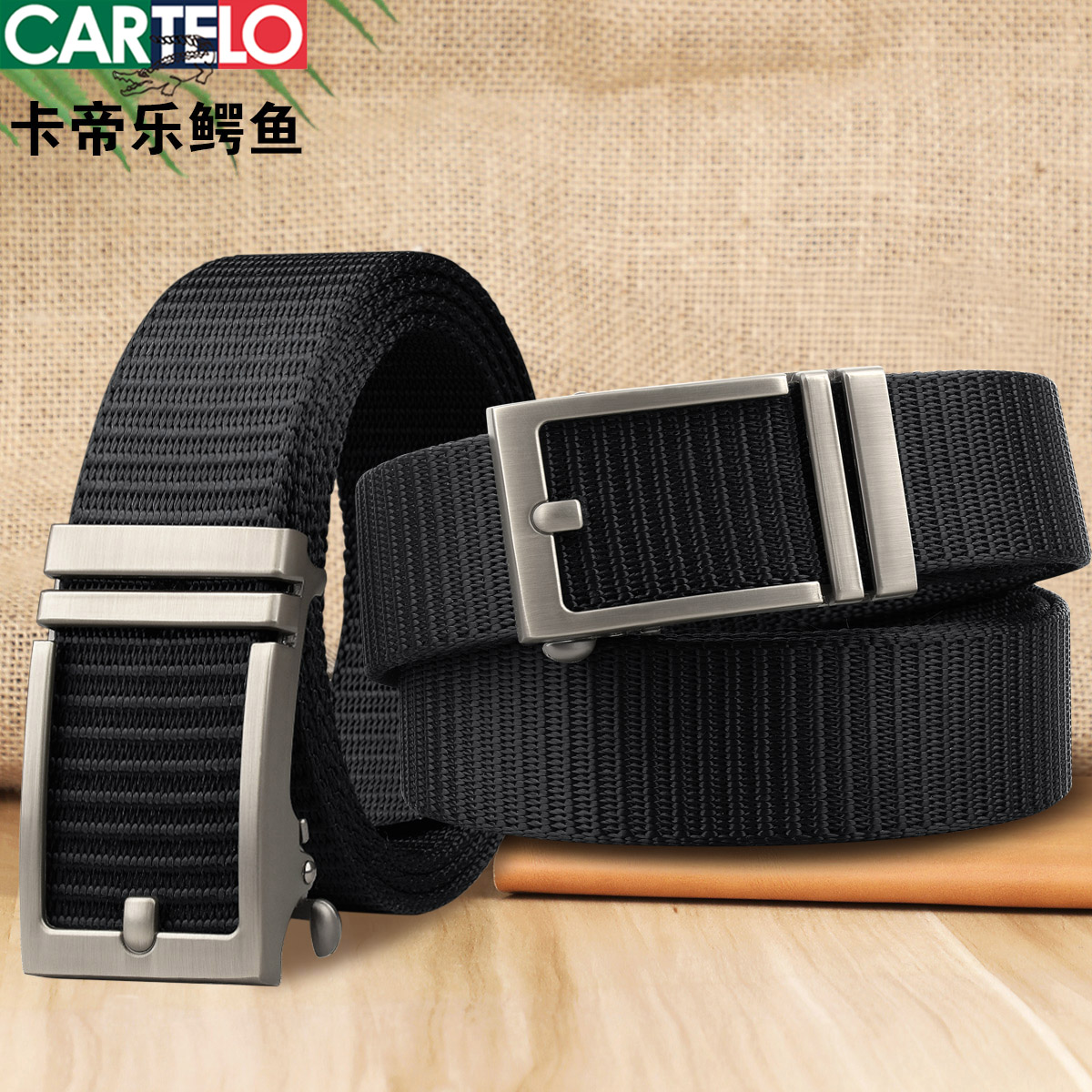 帆布皮带男自动扣尼龙腰带简约透气吸汗牛仔无牙无极调节裤带