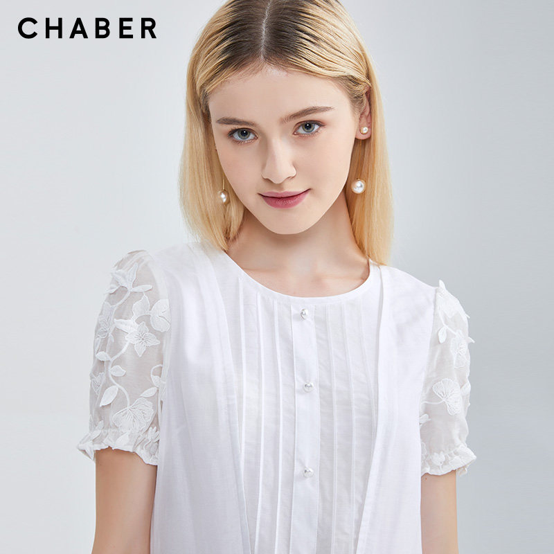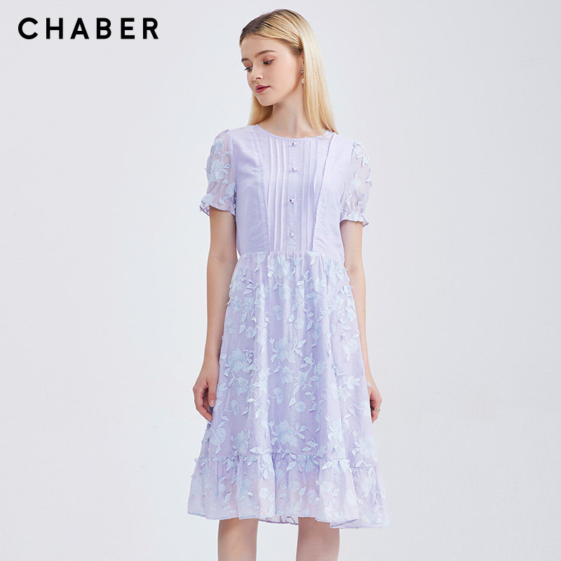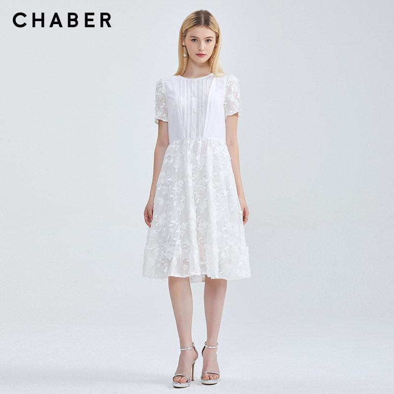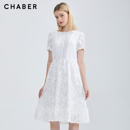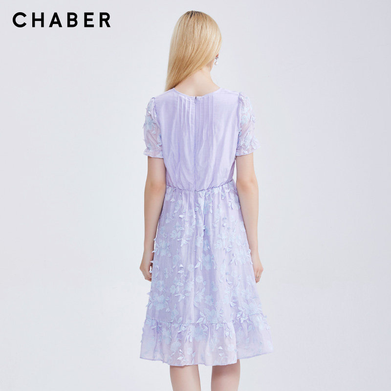 chaber/巧帛秋季新品淑女优雅立体浮雕高腰显瘦内衬设计连衣裙