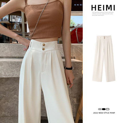 米白色西装裤女夏薄款宽松显瘦小个子直筒裤高腰垂感拖地阔腿裤潮