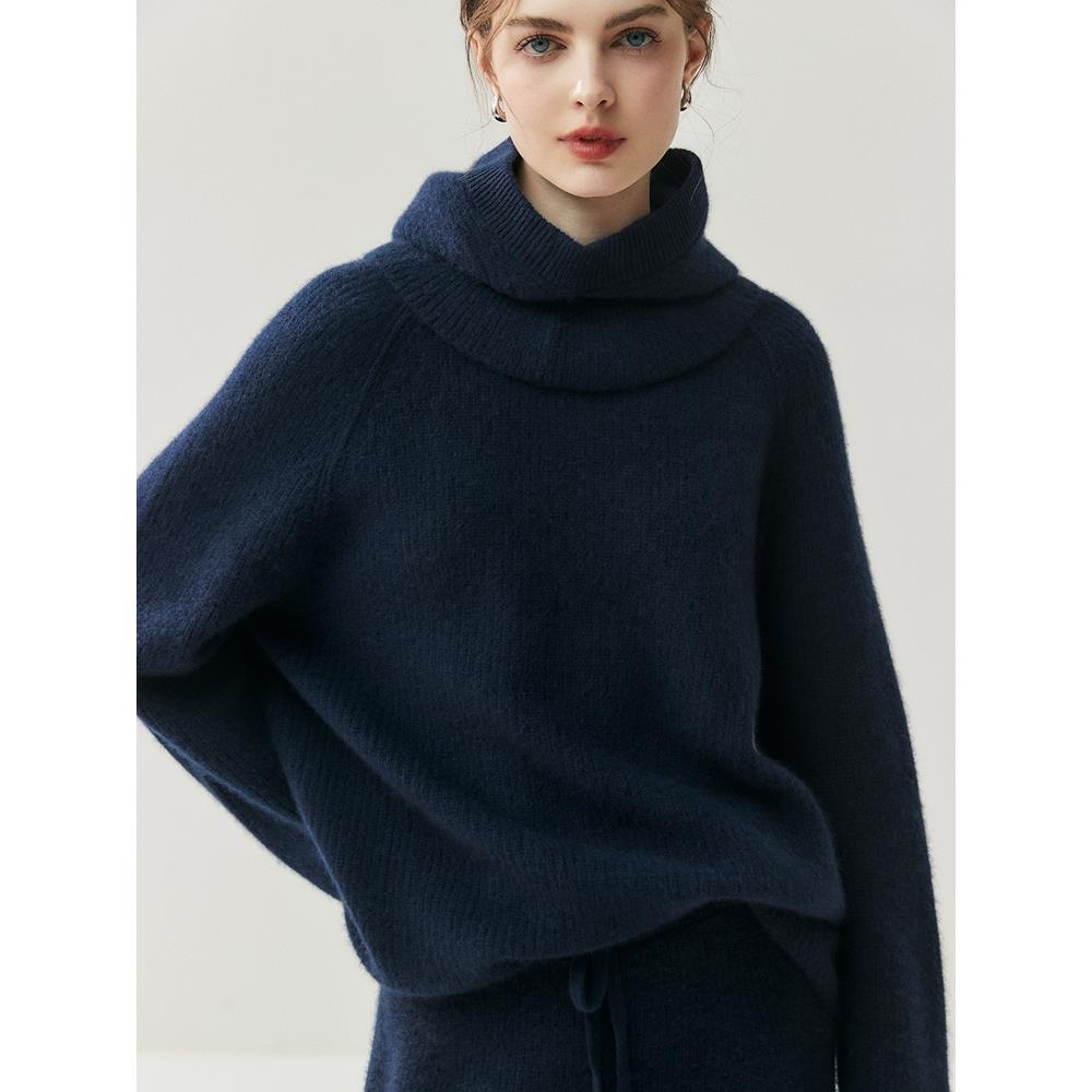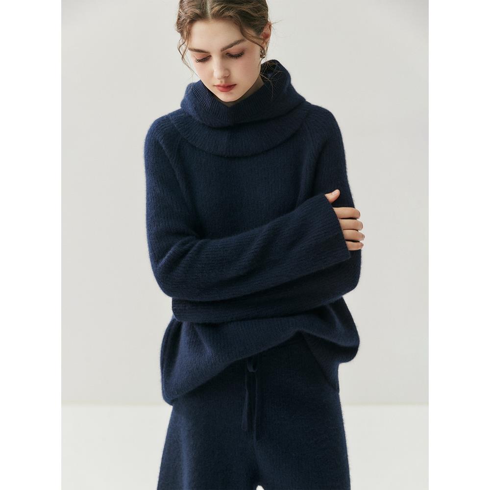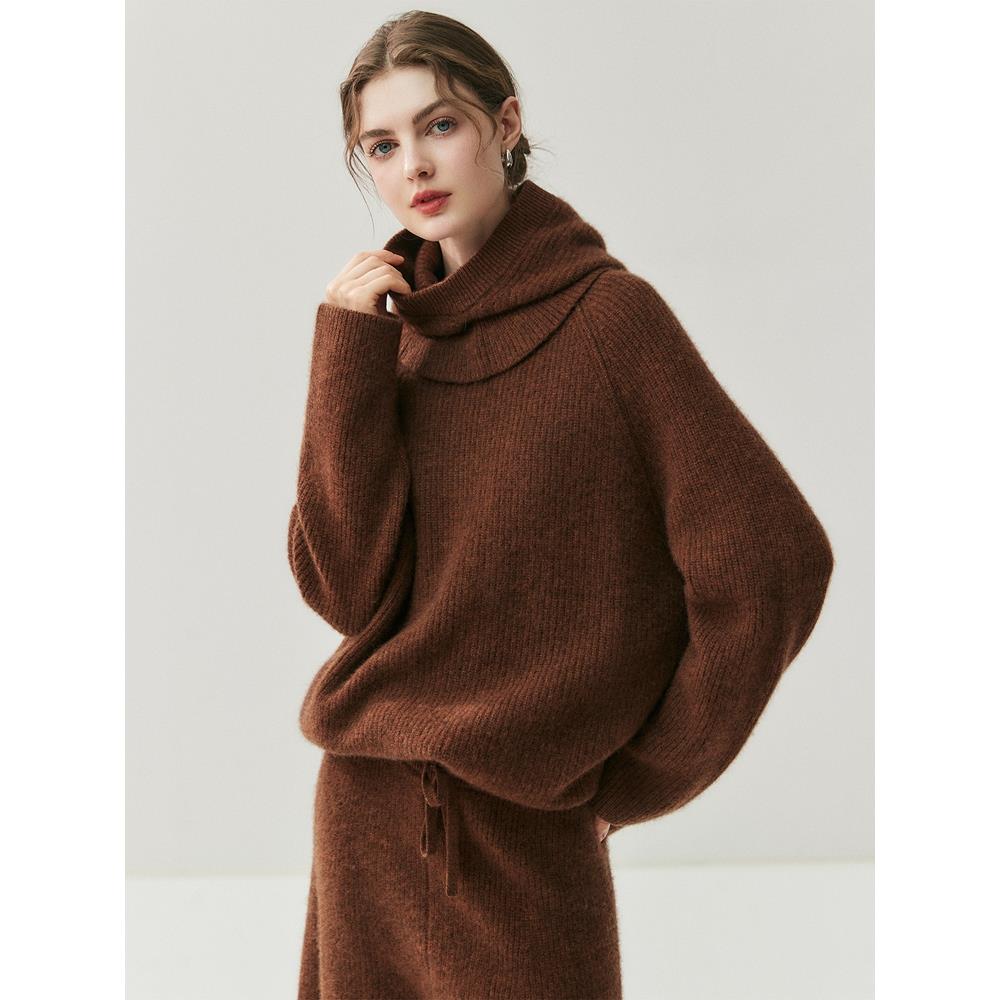 新款羊绒衫女圆领加厚宽松毛衣针织羊毛衫帽子打底裤上衣三件套