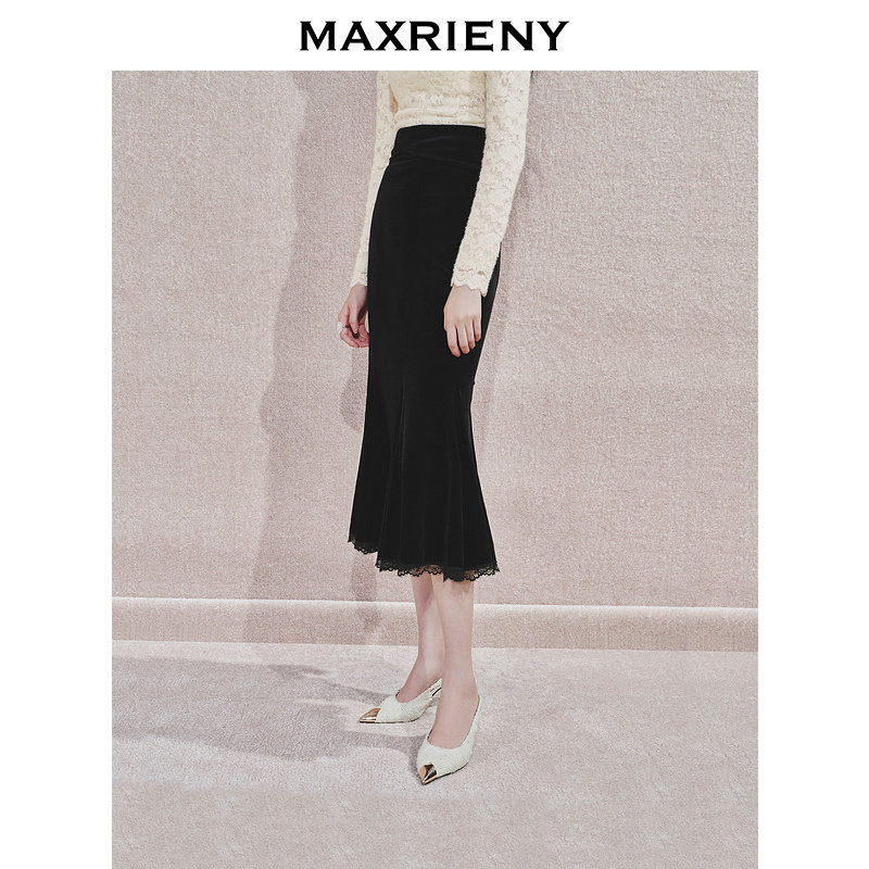 MAXRIENY浪漫优雅感蕾丝鱼尾半身裙年冬新款复古赫本风裙子
