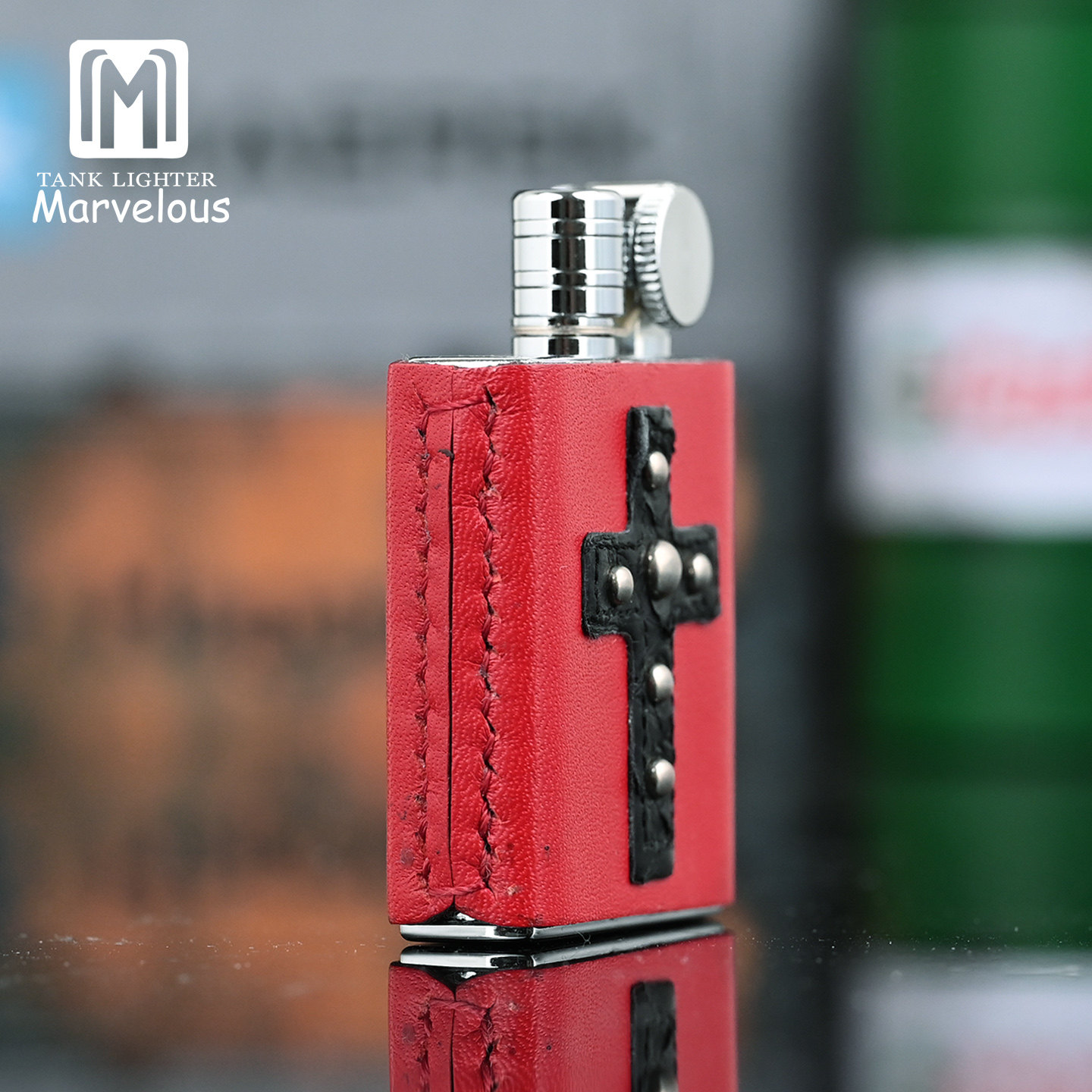 日本原装玛乐思Marvelous真皮限量十字架款砂轮煤油打火机收藏