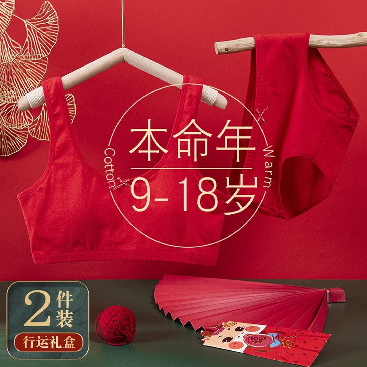 少女本命年大红色内衣套装12岁13儿童发育期女童纯棉小背心文胸罩