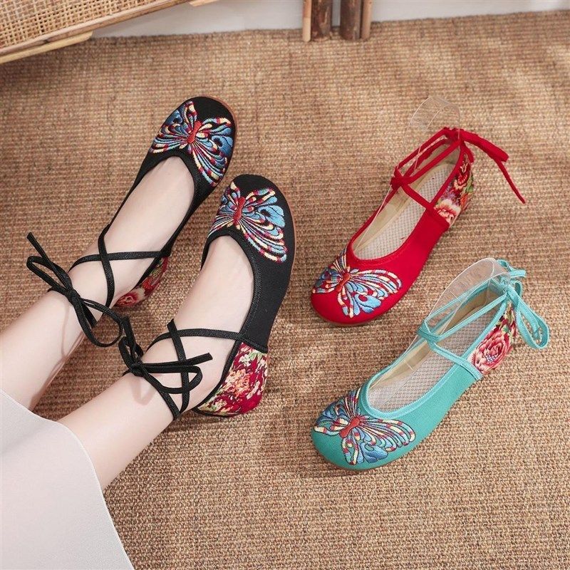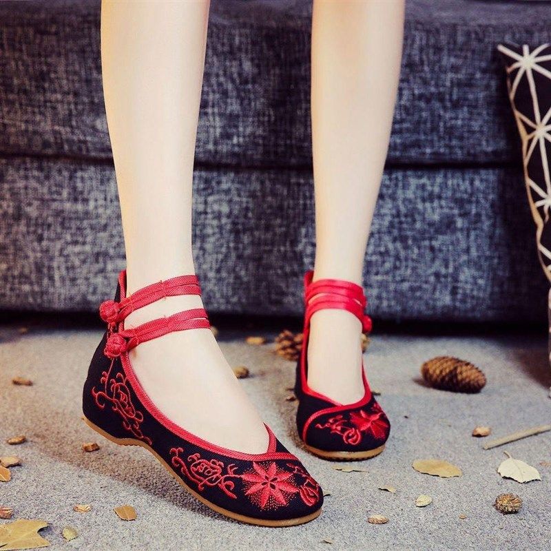 苗族鞋子女布鞋民族风绣花鞋坡跟鞋红色婚鞋广场舞蹈鞋汉服单鞋子
