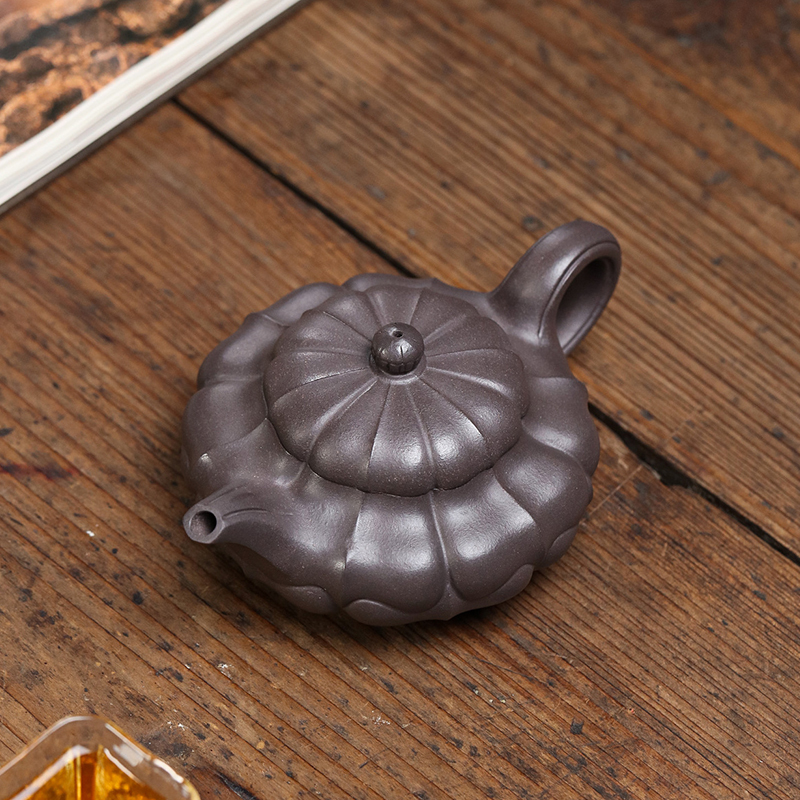 宜兴紫砂壶原矿青灰段泥筋纹合菱全手工家用功夫茶具泡茶壶 250ml