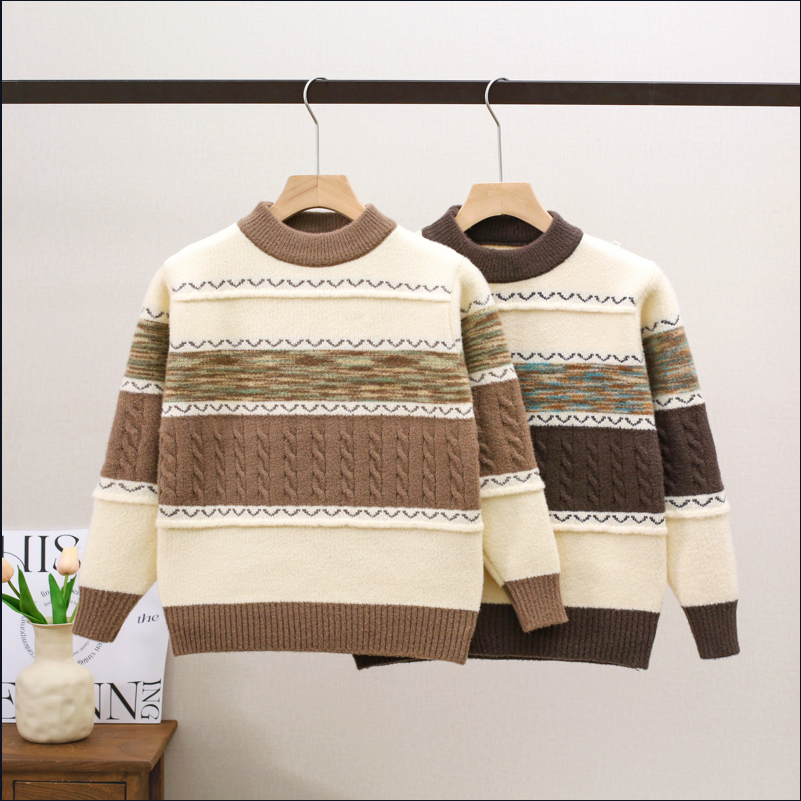 2025男童冬季新款韩版加厚条纹毛线衣中大童保暖针织衫