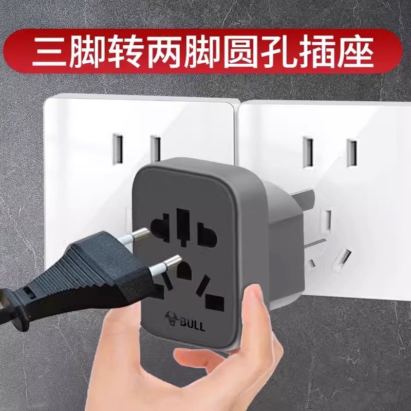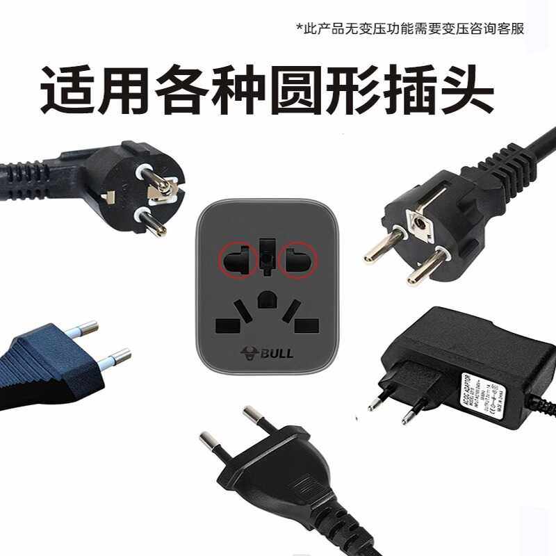 公牛圆孔插座圆头转换器欧规圆形转换插头圆口转接头欧转中插排
