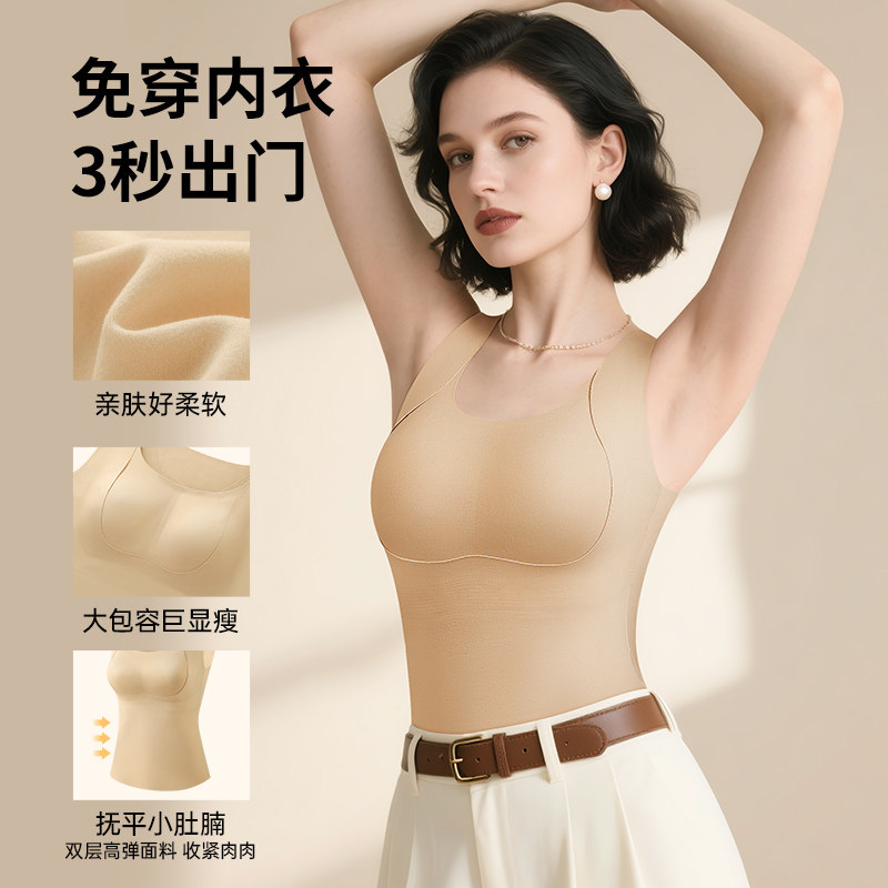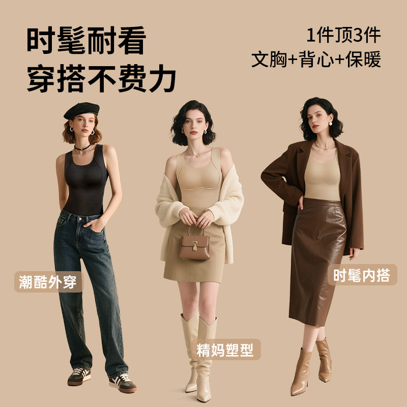 润微提拉保暖背心大胸显小保暖塑形免穿文胸女士打底上衣秋冬新款