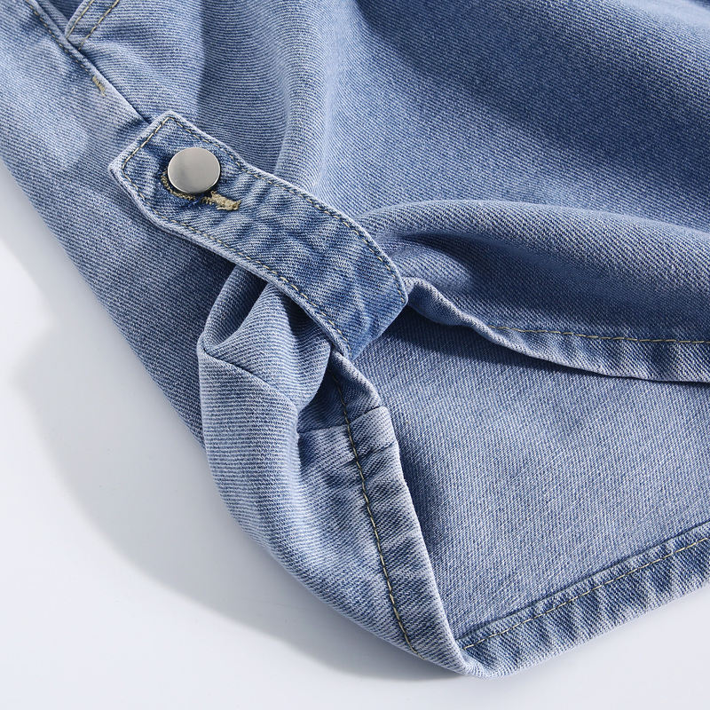 LY真维斯女装夏季时尚搭带反脚牛仔裤小众设计感直筒短裤女款裤子