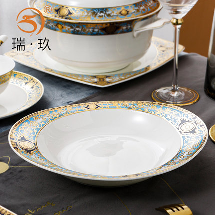 浮雕餐具盘子欧式轻奢骨瓷菜盘金边果盘创意元宝盘家用碟子异形盘