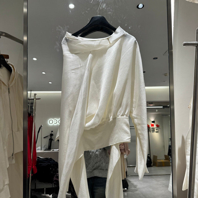欧洲站2026春季新款时尚一字肩绑带长袖衬衫女高级百搭上衣86311