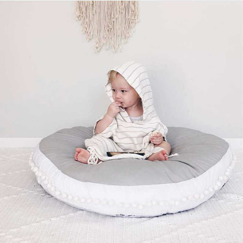 ins北欧全棉毛球布艺加厚儿童地毯 圆形宝宝爬行垫儿童房装饰现货