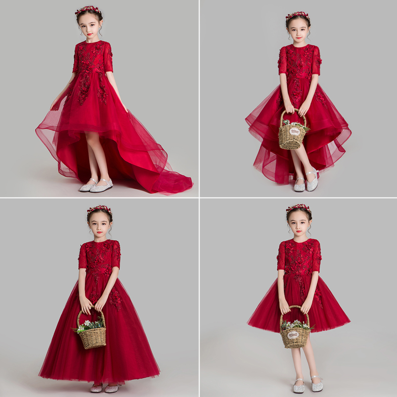 儿童晚礼服公主裙蓬蓬纱女童婚y纱拖尾小孩花童模特走秀钢琴演出