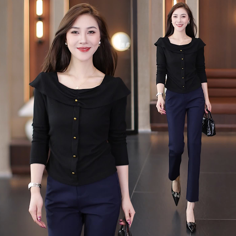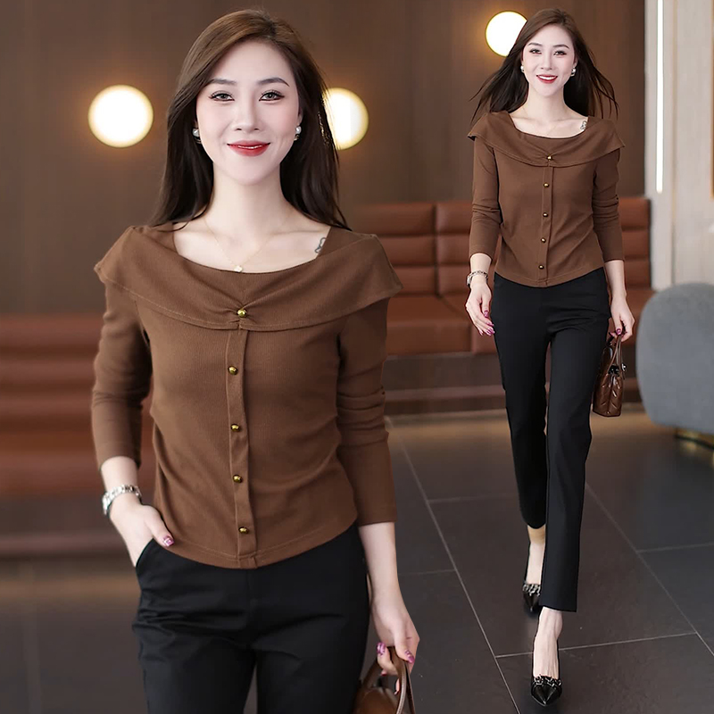 时尚一字肩长袖T恤女2025早秋新款小个子修身显瘦百搭减龄打底衫