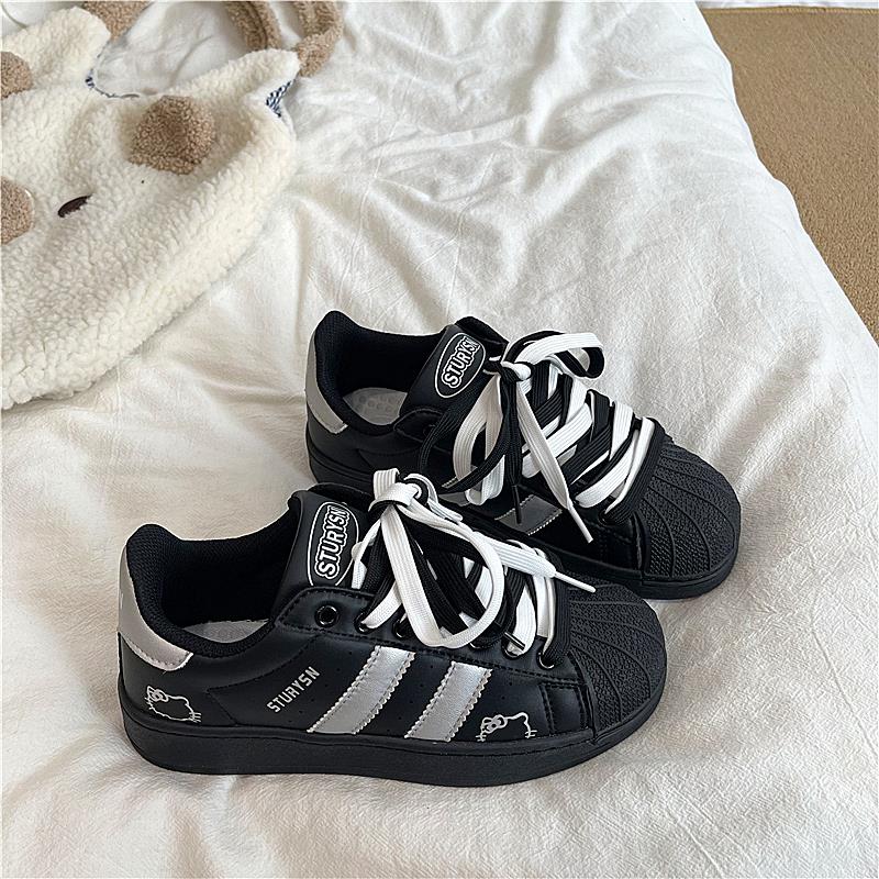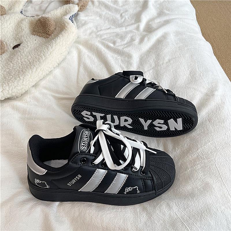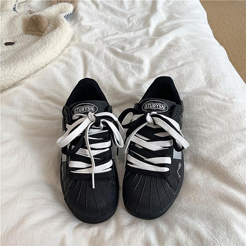 韩版黑银色贝壳头板鞋ins2025秋季新款学生复古小白鞋百搭休闲鞋