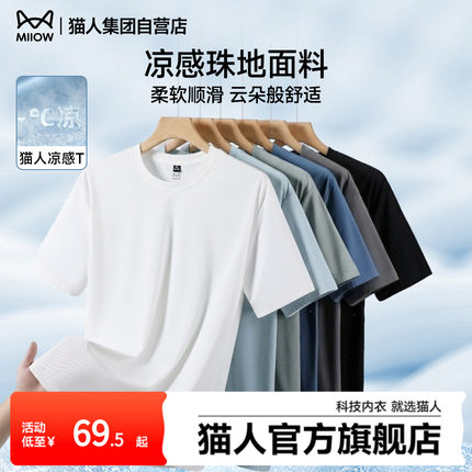 猫人新款凉感短袖T恤男2026年春季凉感速干圆领宽松多少百搭上衣Y