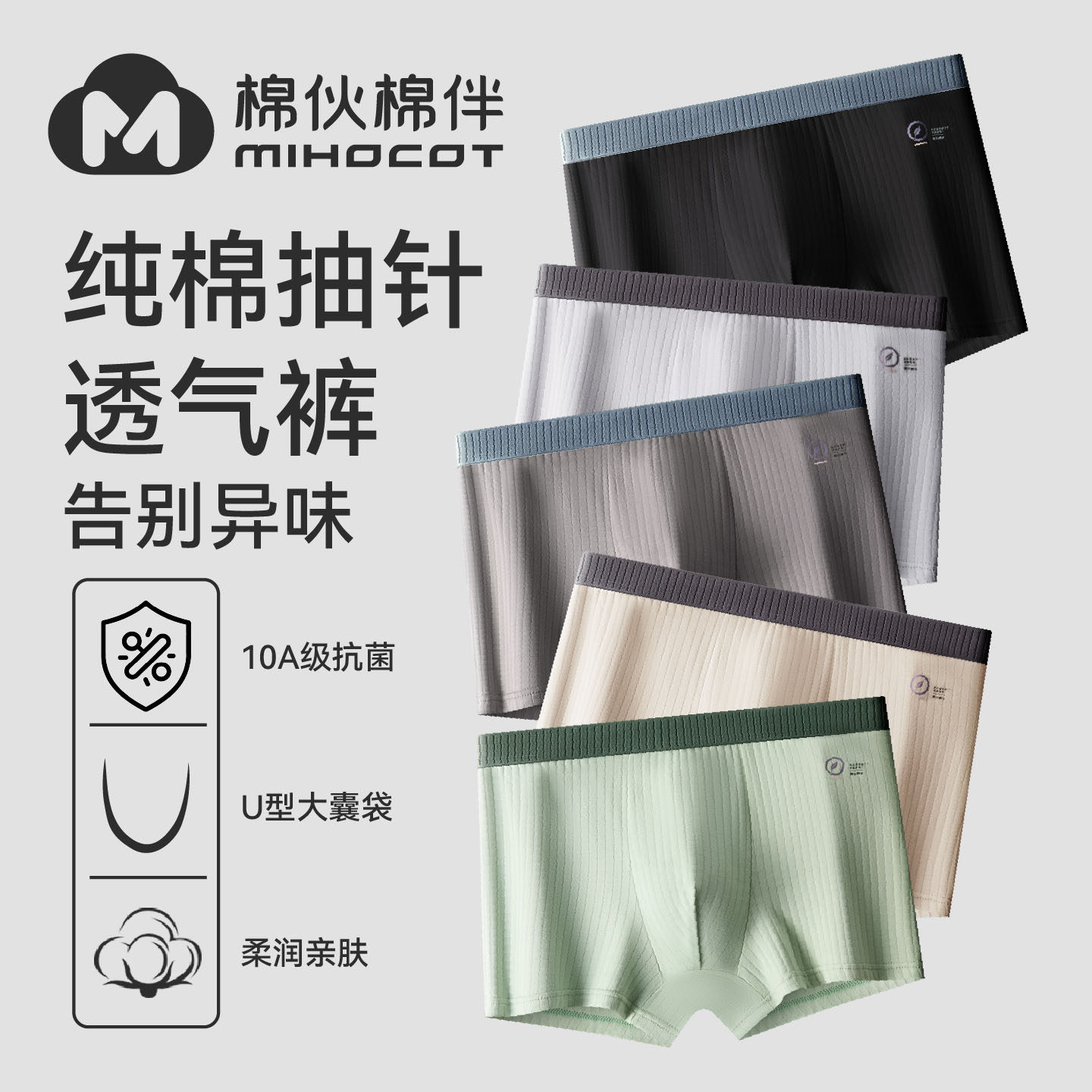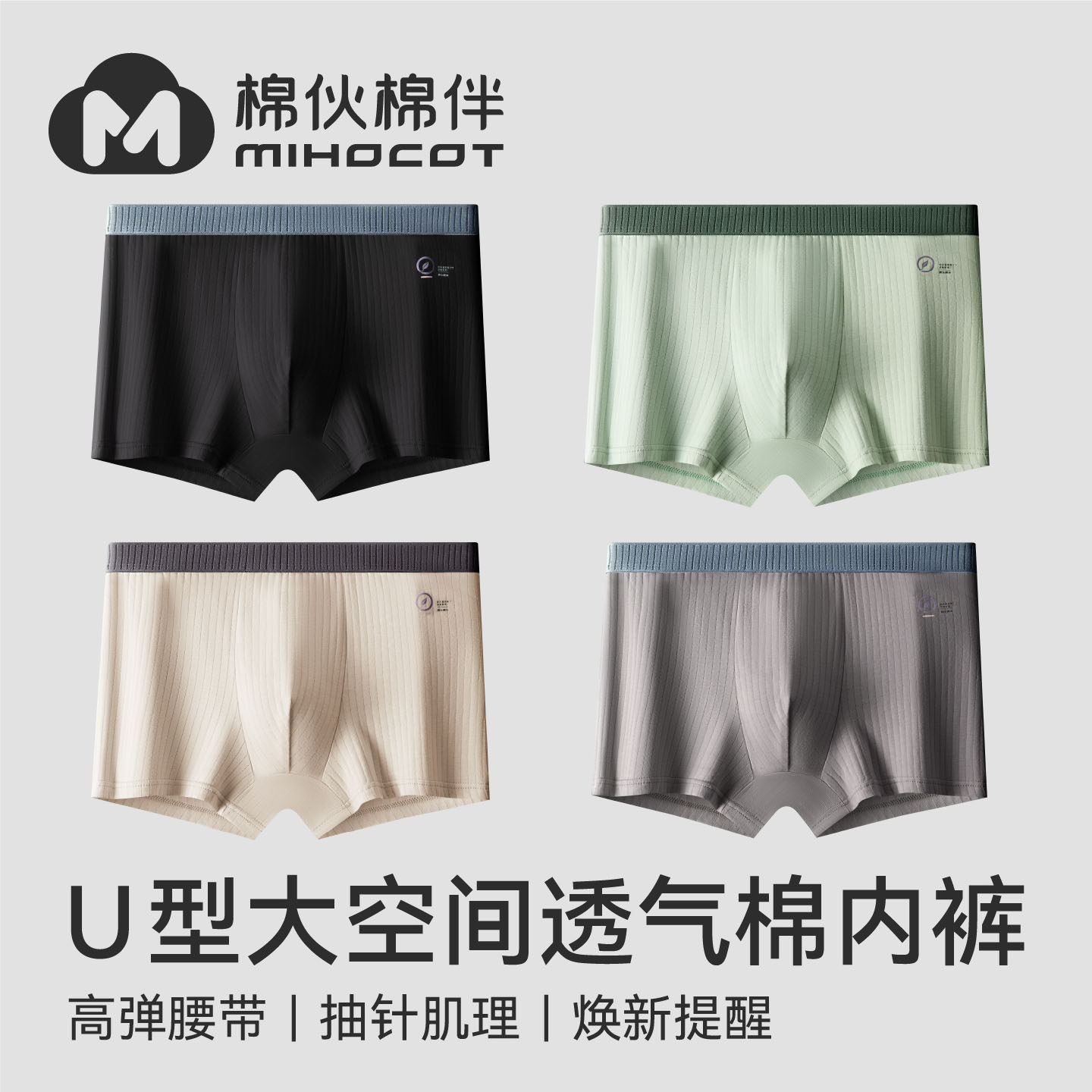 棉伙棉伴95%纯棉男士内裤四角裤衩抗菌裆男生潮流个性平角短裤头