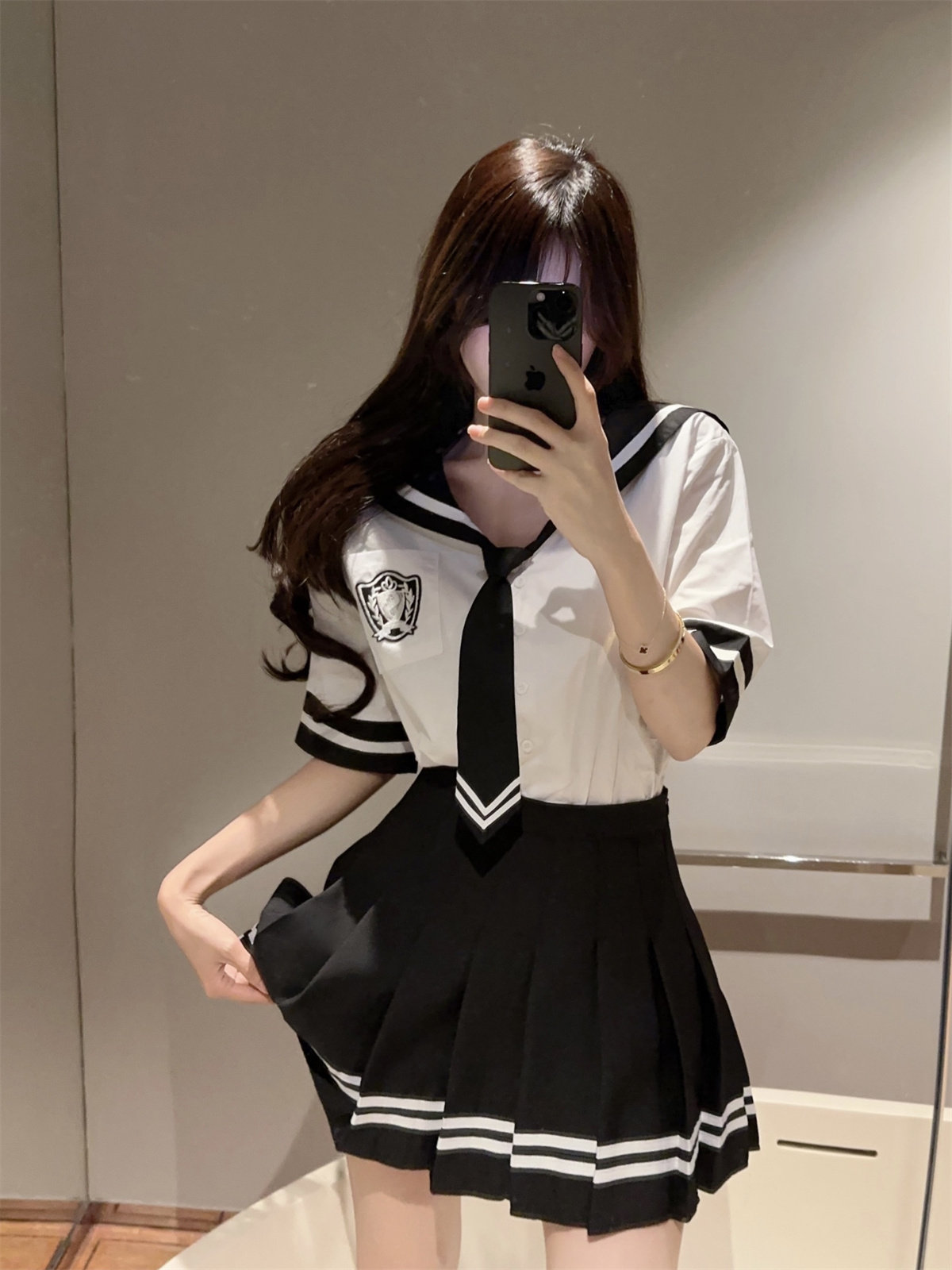 学院风jk制服套装女减龄夏季短袖衬衫海军领高腰半身裙两件套水手