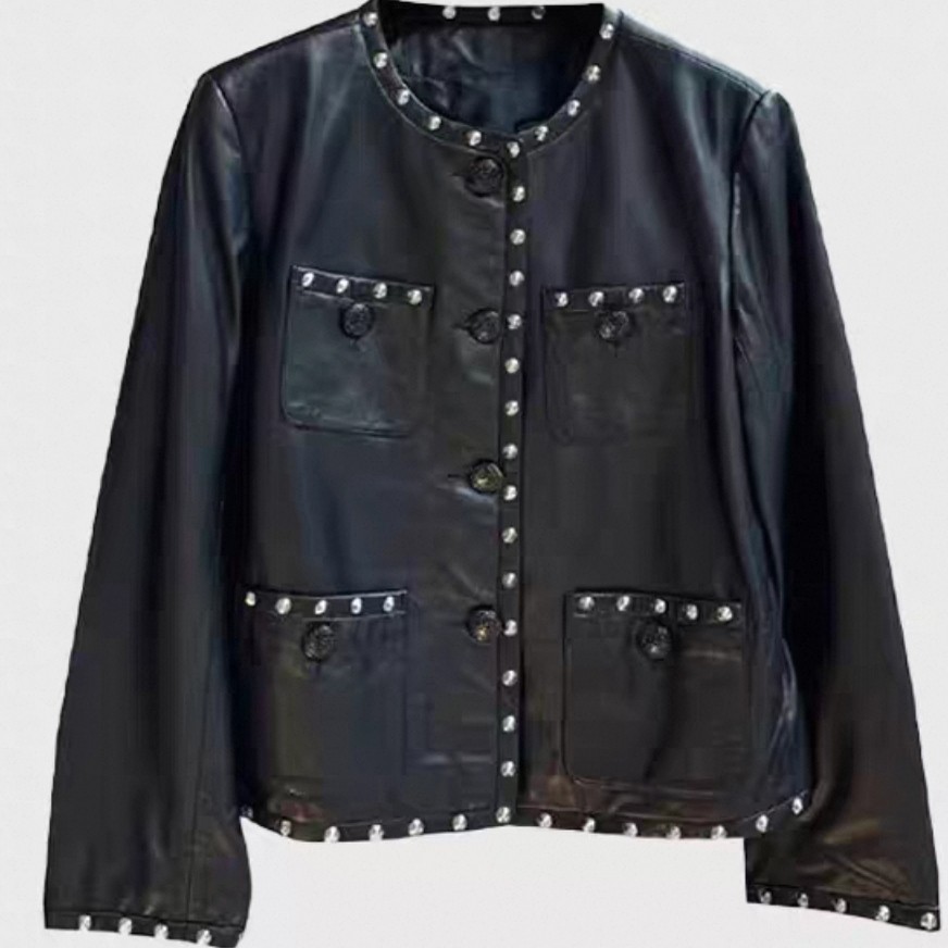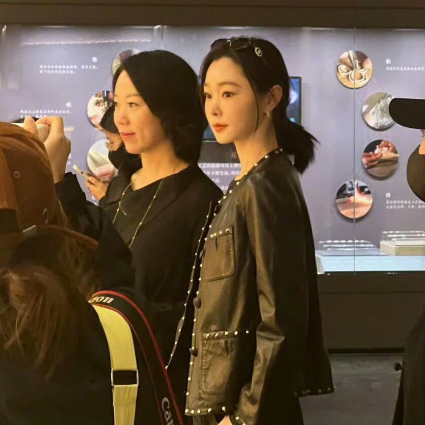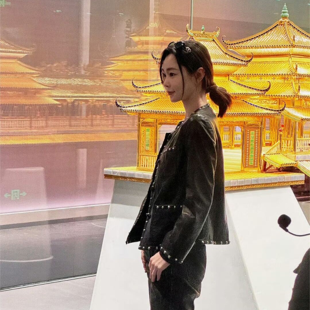 宋轶明星同款短款铆钉机车风pu皮衣圆领小个子修身夹克外套2025春