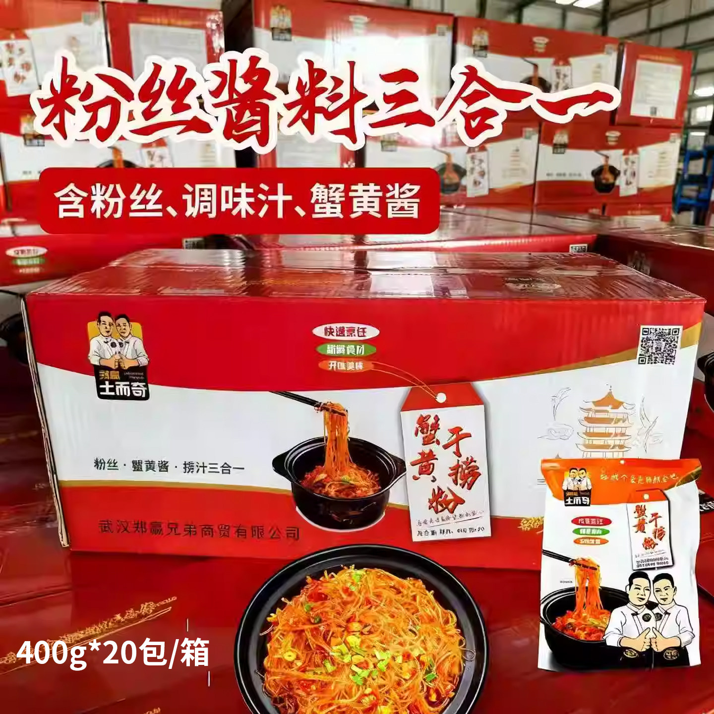 蟹黄干捞粉丝400g带酱料包龙口粉丝煲半成品菜装蚂蚁上树商用橙色