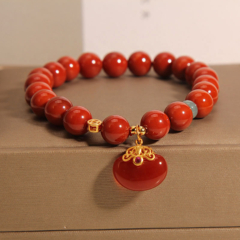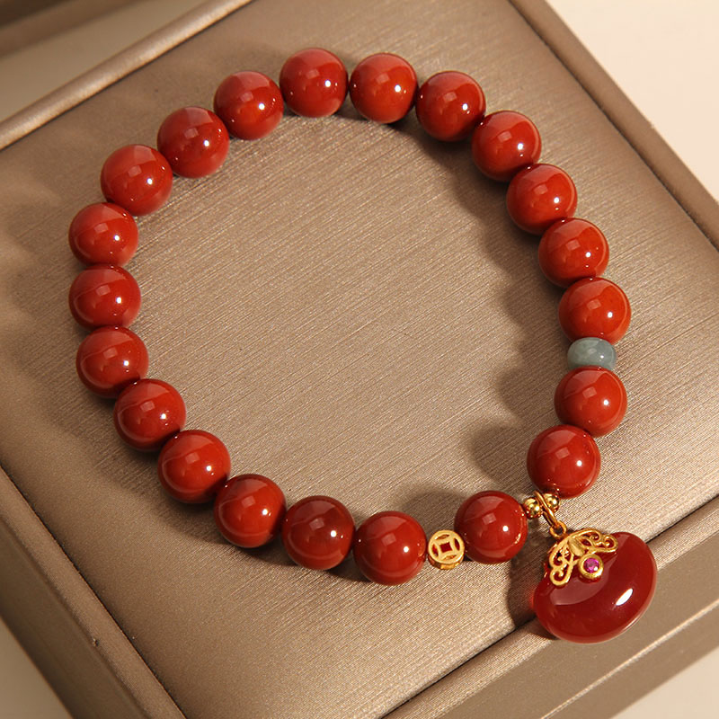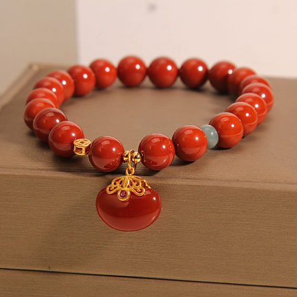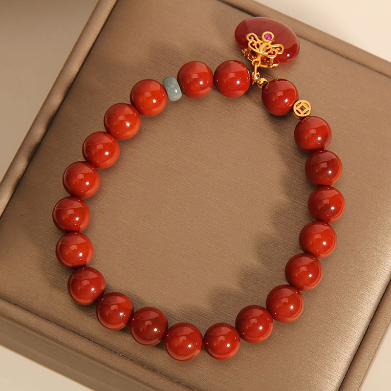 南红玛瑙手链女原创设计民族风轻奢复古相思豆吊坠水晶手串送闺蜜