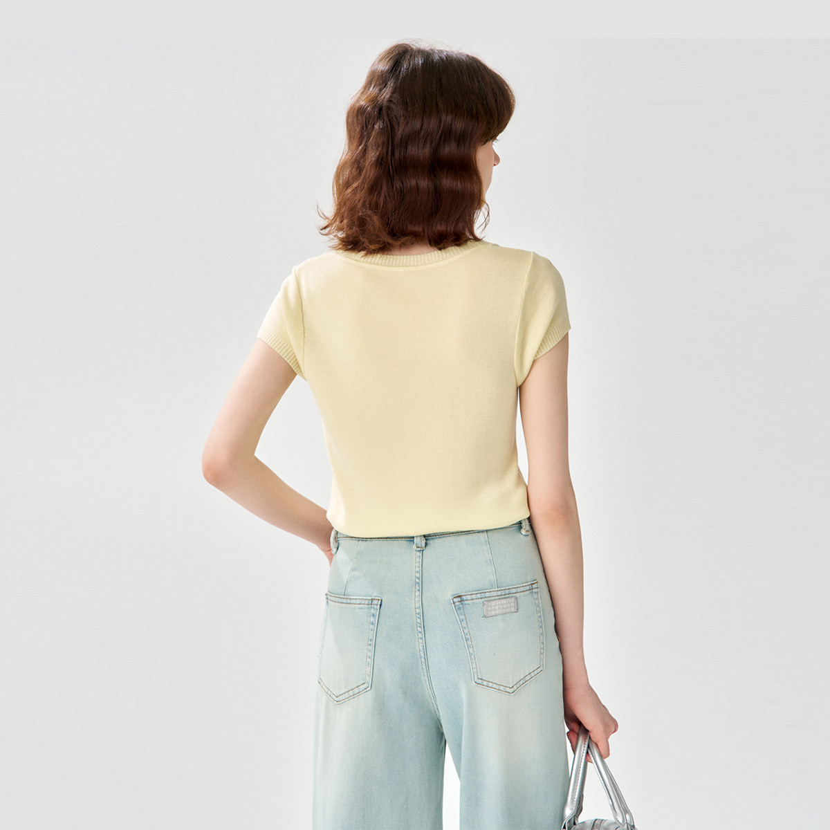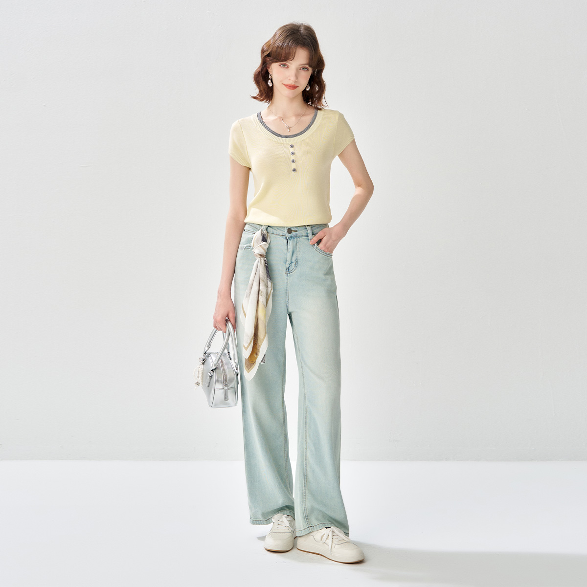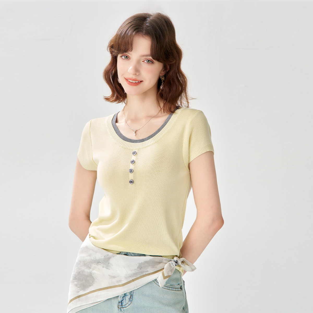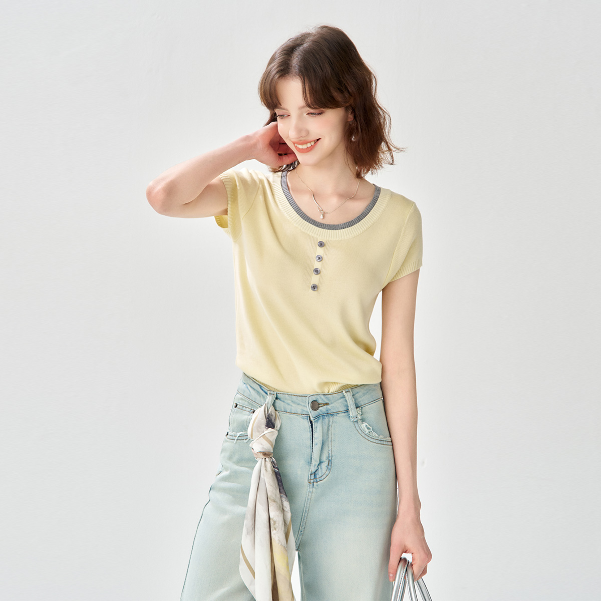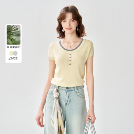 【100%莱赛尔】25夏款拼色针织短袖上衣宽松透气百搭T恤女