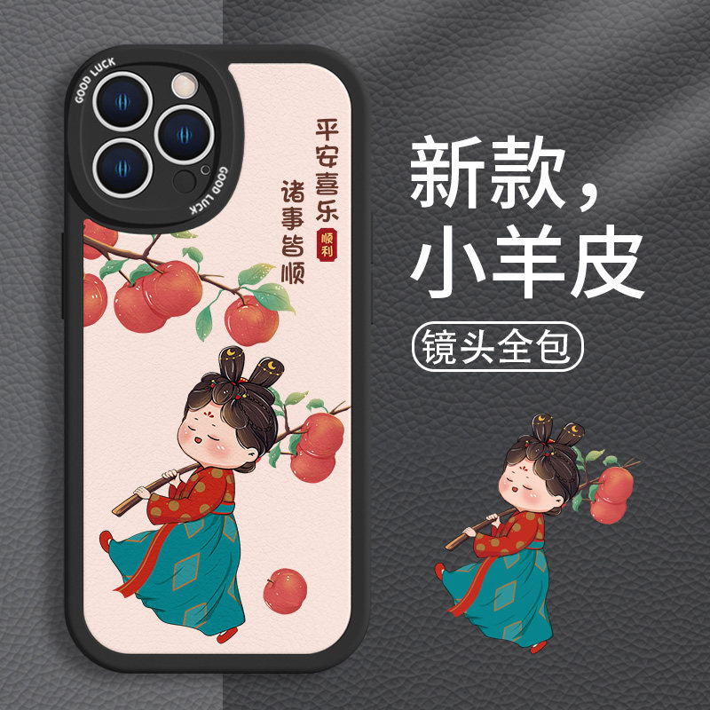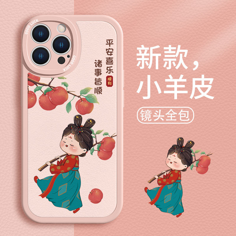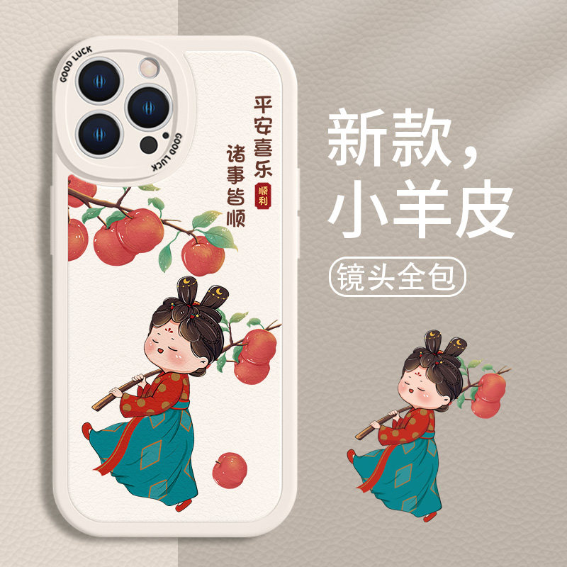 适用喜庆iphone15手机壳新款16苹果17/14女款13promax美人12mini平安喜乐11pro古风xr卡通xsmax小羊皮plus套