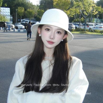 法式复古白色礼帽赫本风留洋大小姐帽子秋冬小香风优雅渔夫帽盆帽