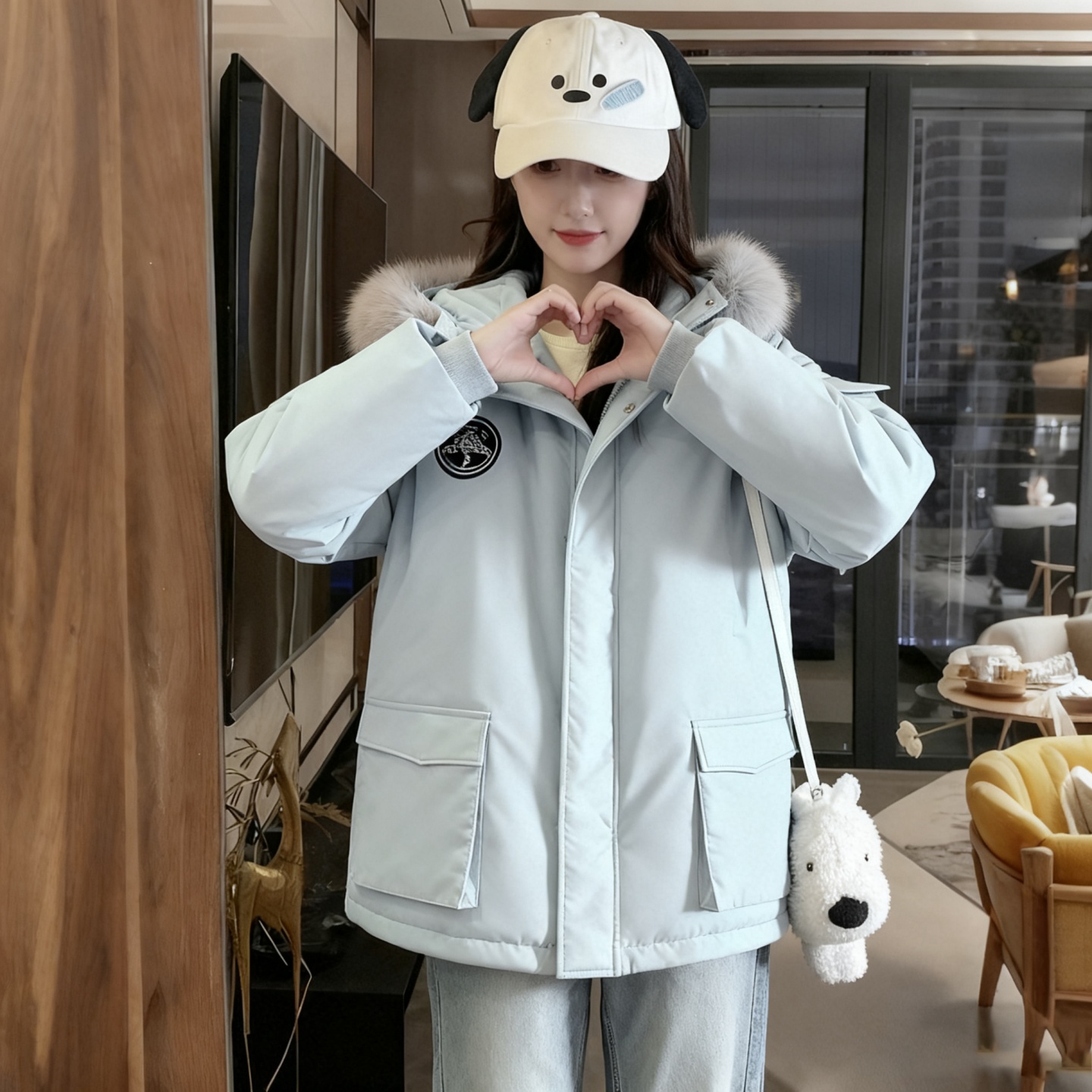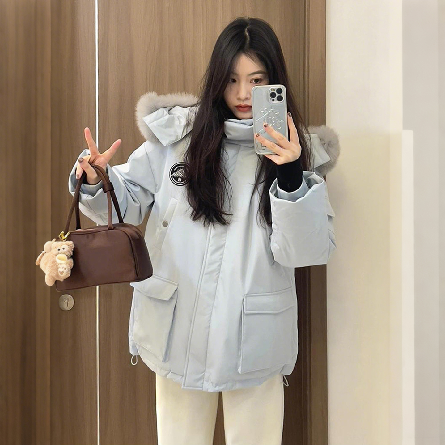 特大码女装胖mm学院风大毛领派克棉服女连帽工装加厚保暖棉衣外套