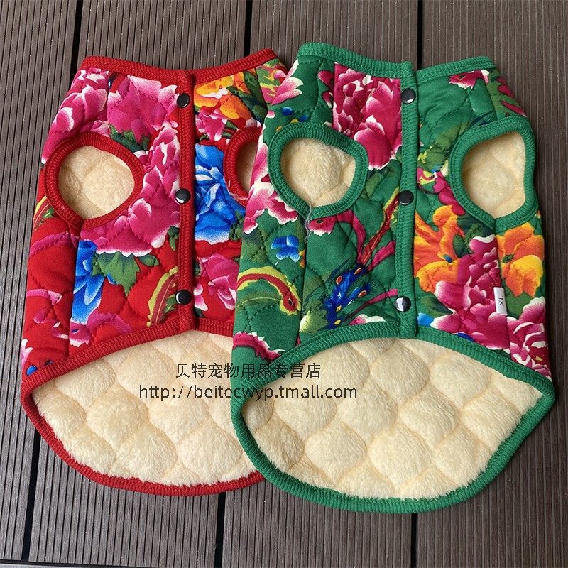 狗狗衣服秋冬加绒加厚保暖东北大花袄泰迪柯基金毛大狗冬款棉衣厚