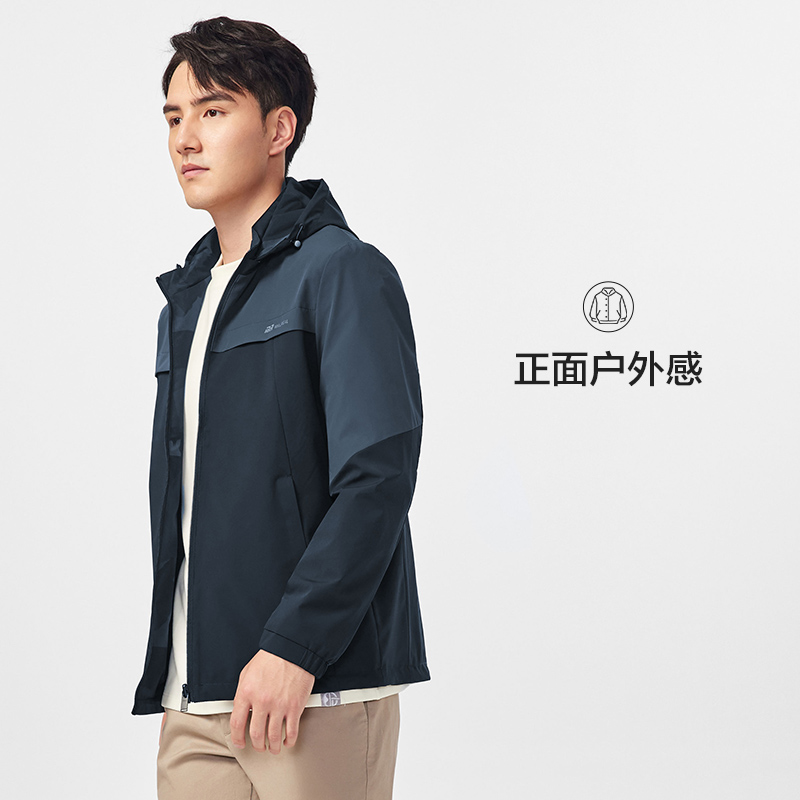 红豆夹克外套男士25春季新款休闲双面弹力拼色可拆连帽上衣男款
