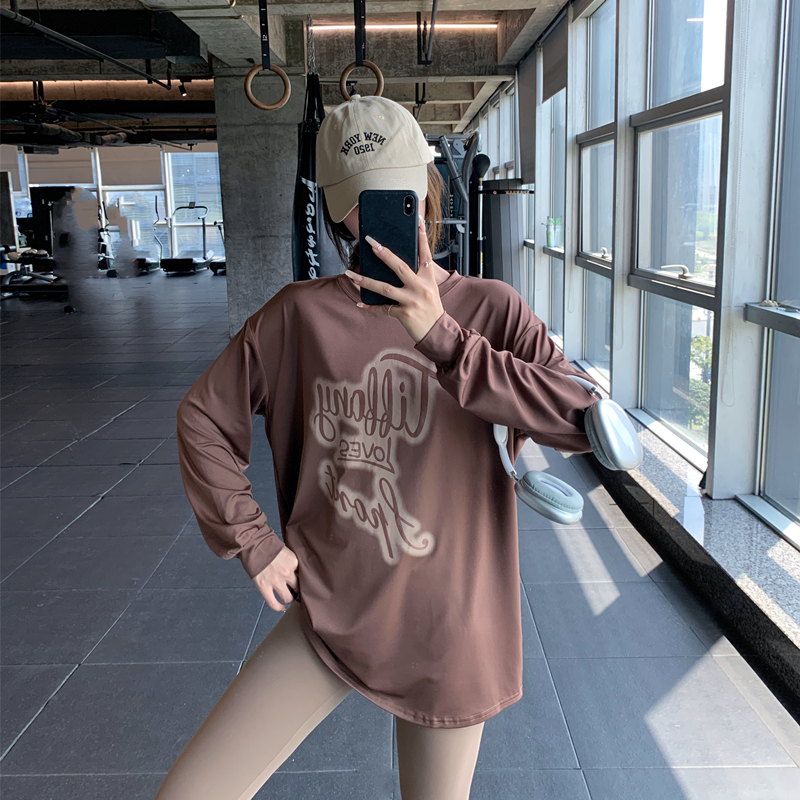 显瘦宽松大码胖mm女健身服瑜伽服上衣速干跑步长款字母运动T恤衫