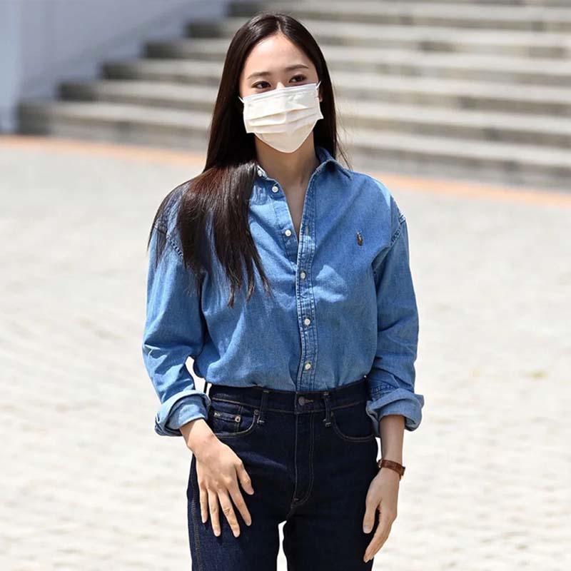 郑秀晶同款宽松长袖外穿刺绣衬衫