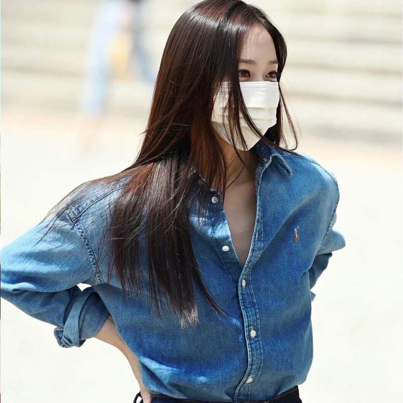 郑秀晶同款RL美式战马刺绣拉夫复古天丝纯棉水洗牛仔衬衫男女衬衣