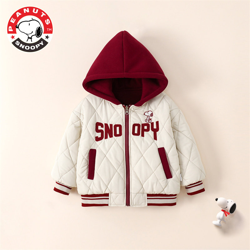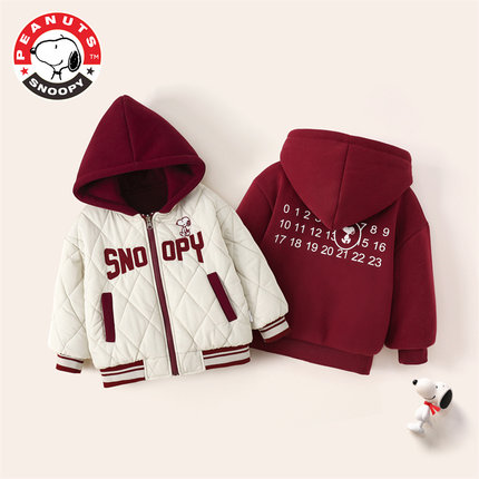 史努比儿童秋冬装夹棉加厚双面穿棒球服连帽短款棉服男女童外套潮