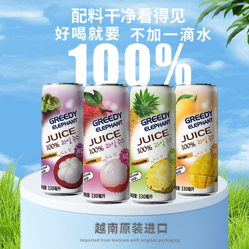 越南进口馋味象nfc山竹汁果肉果汁饮料330ml*6罐装无添加小瓶饮品