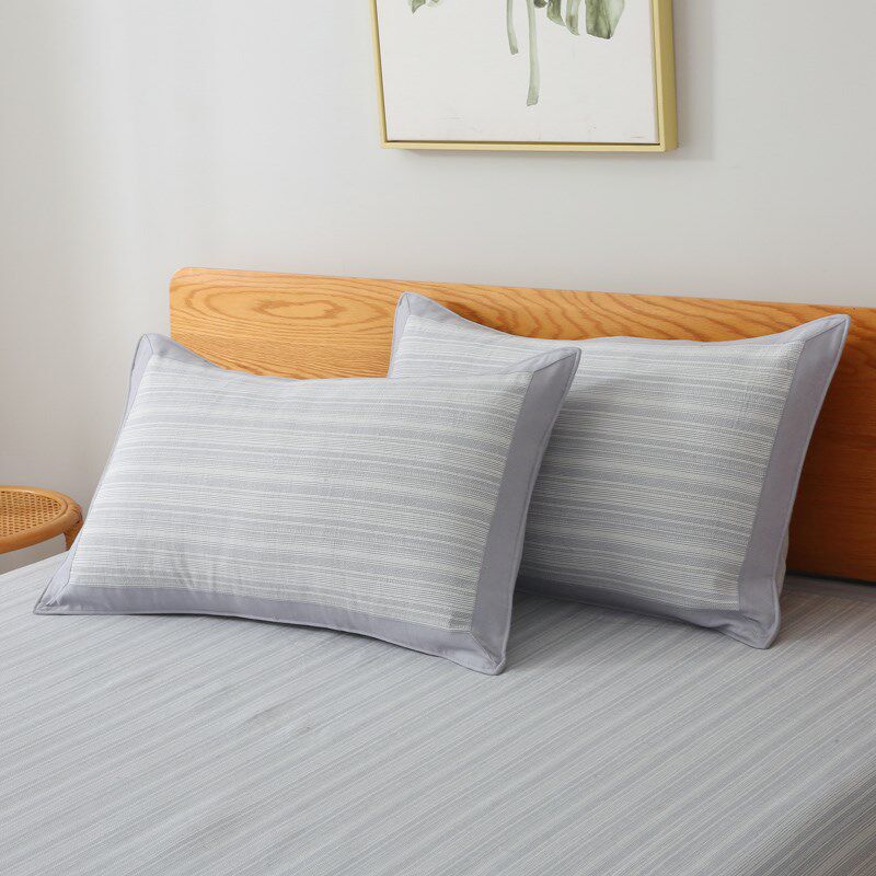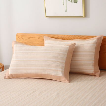 夏季纯棉老粗布枕套单件加厚格子凉席枕头套凉席成人单人枕套一对