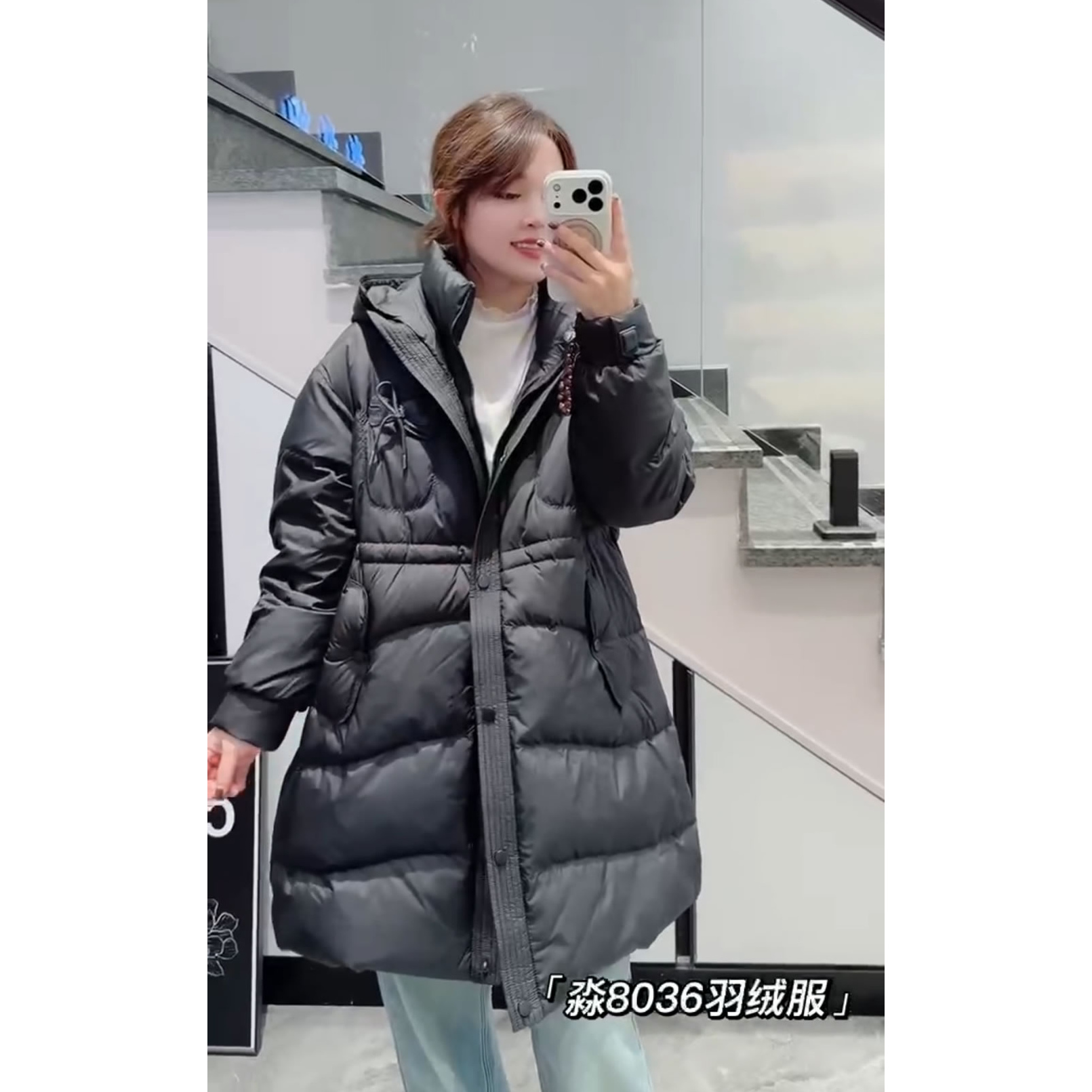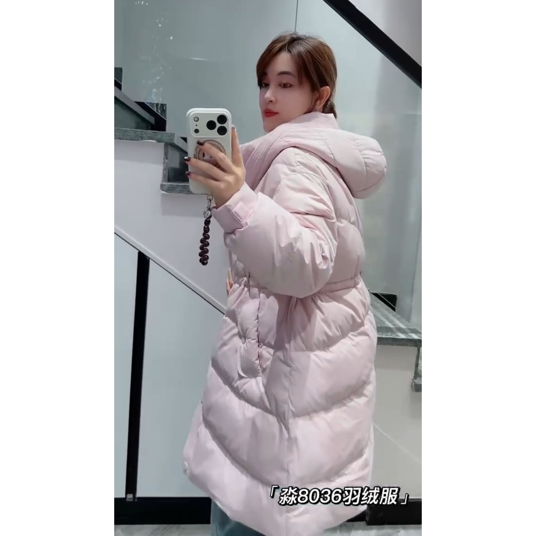 胖淼淼8036冬加大码羽绒服女 200斤胖妹mm连帽收腰显瘦中长白鸭绒