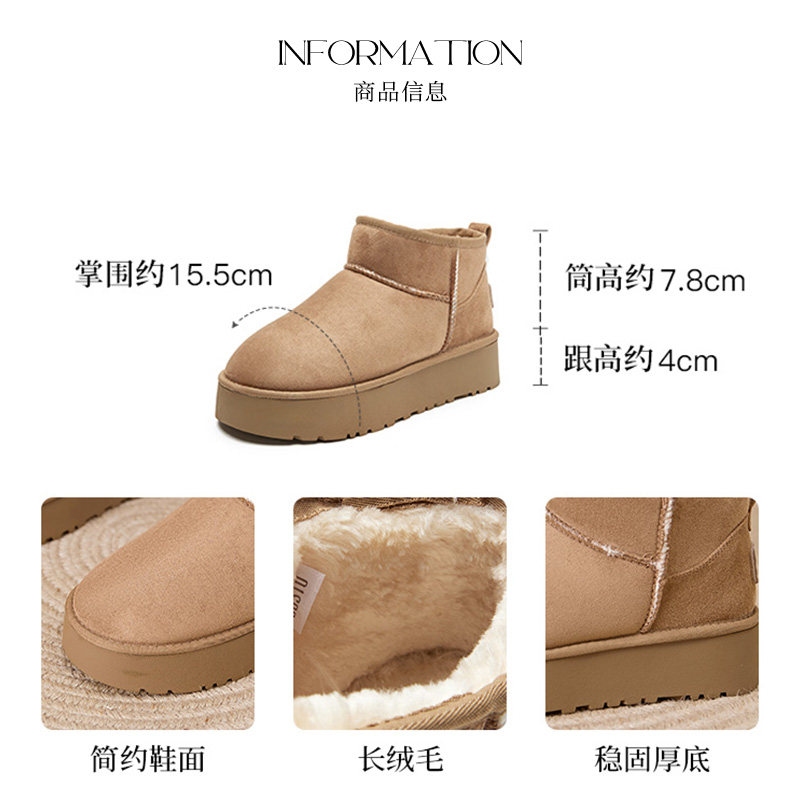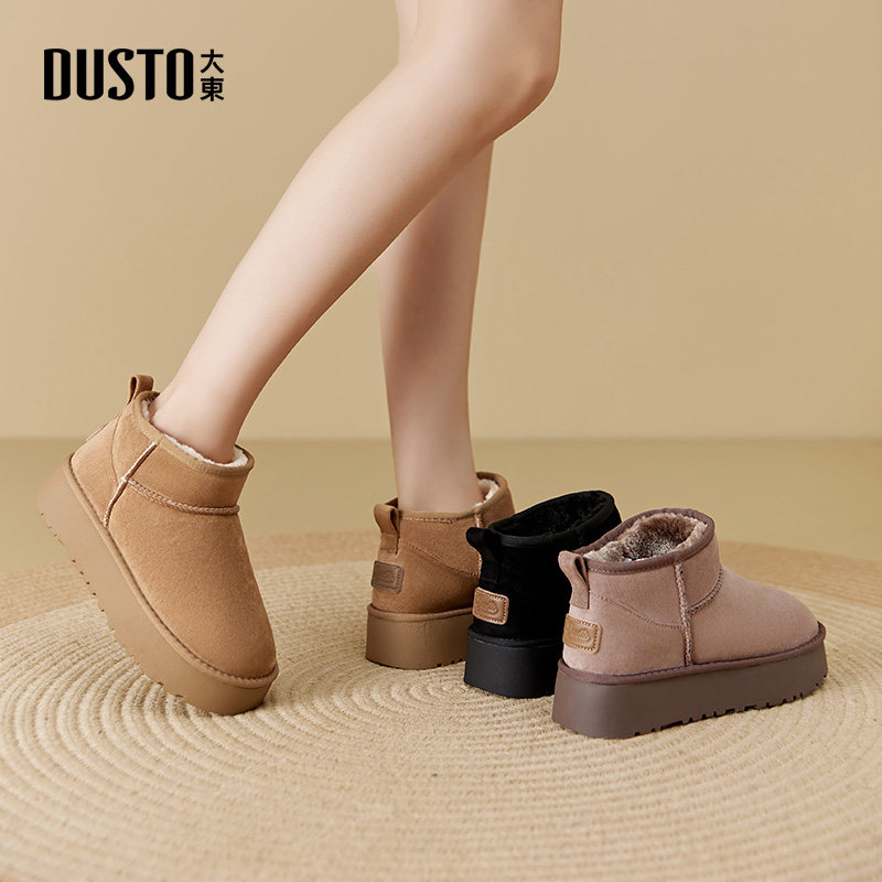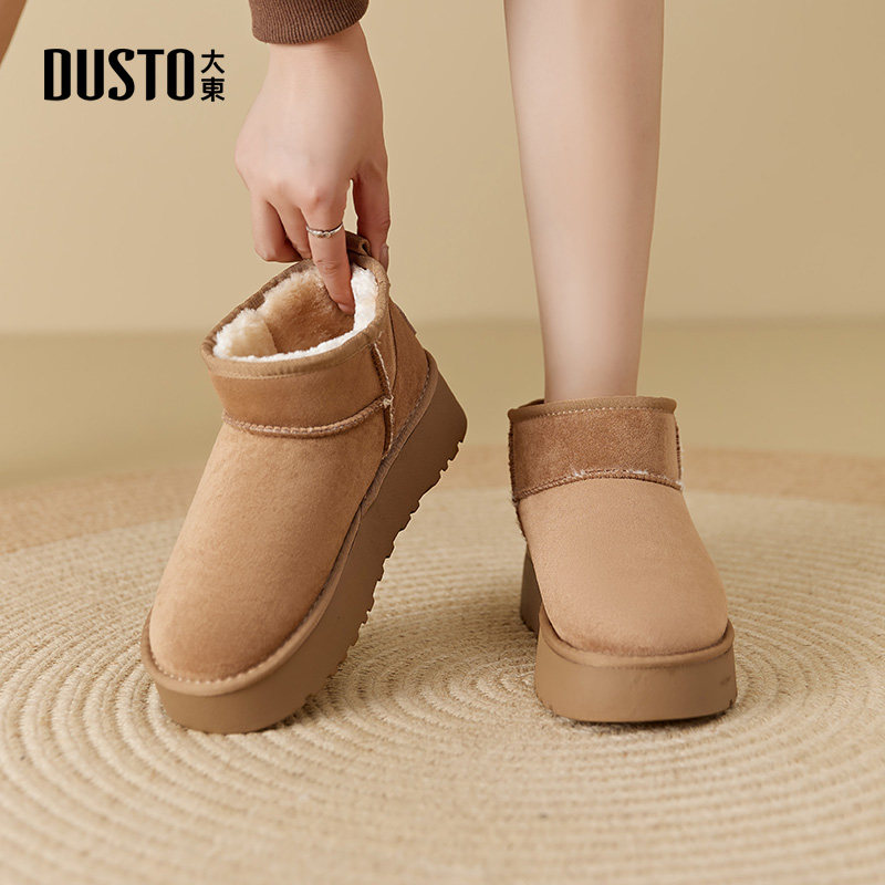 大东女鞋雪地靴2025冬季新款时尚加厚女短靴保暖厚底短筒圆头女靴