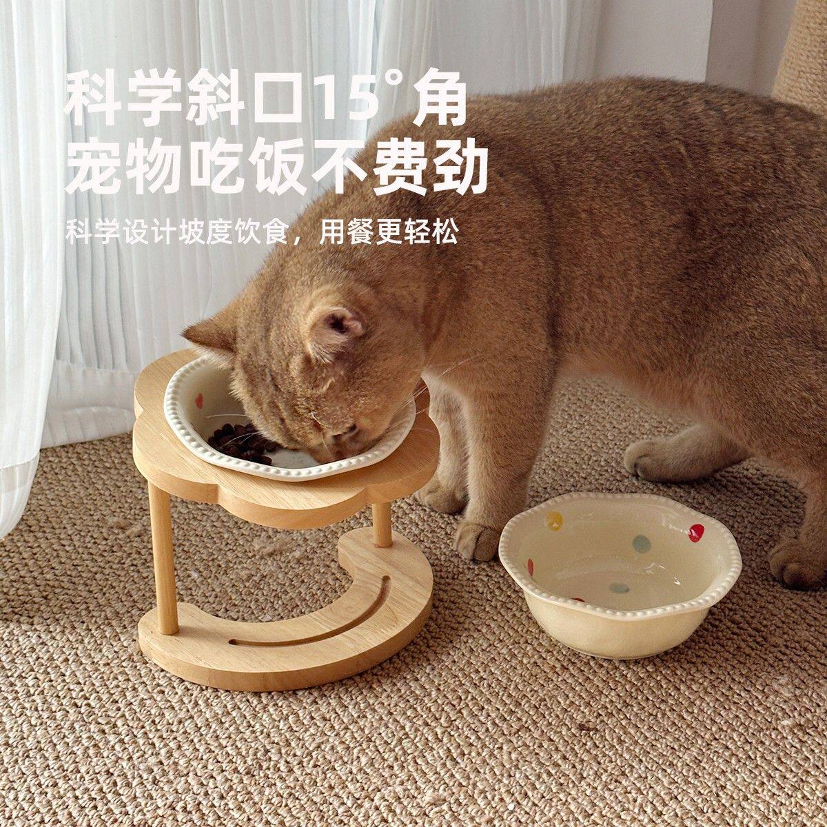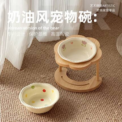 猫碗陶瓷高脚木架斜口保护颈椎狗碗狗食盆不易打翻宠物水碗增高架