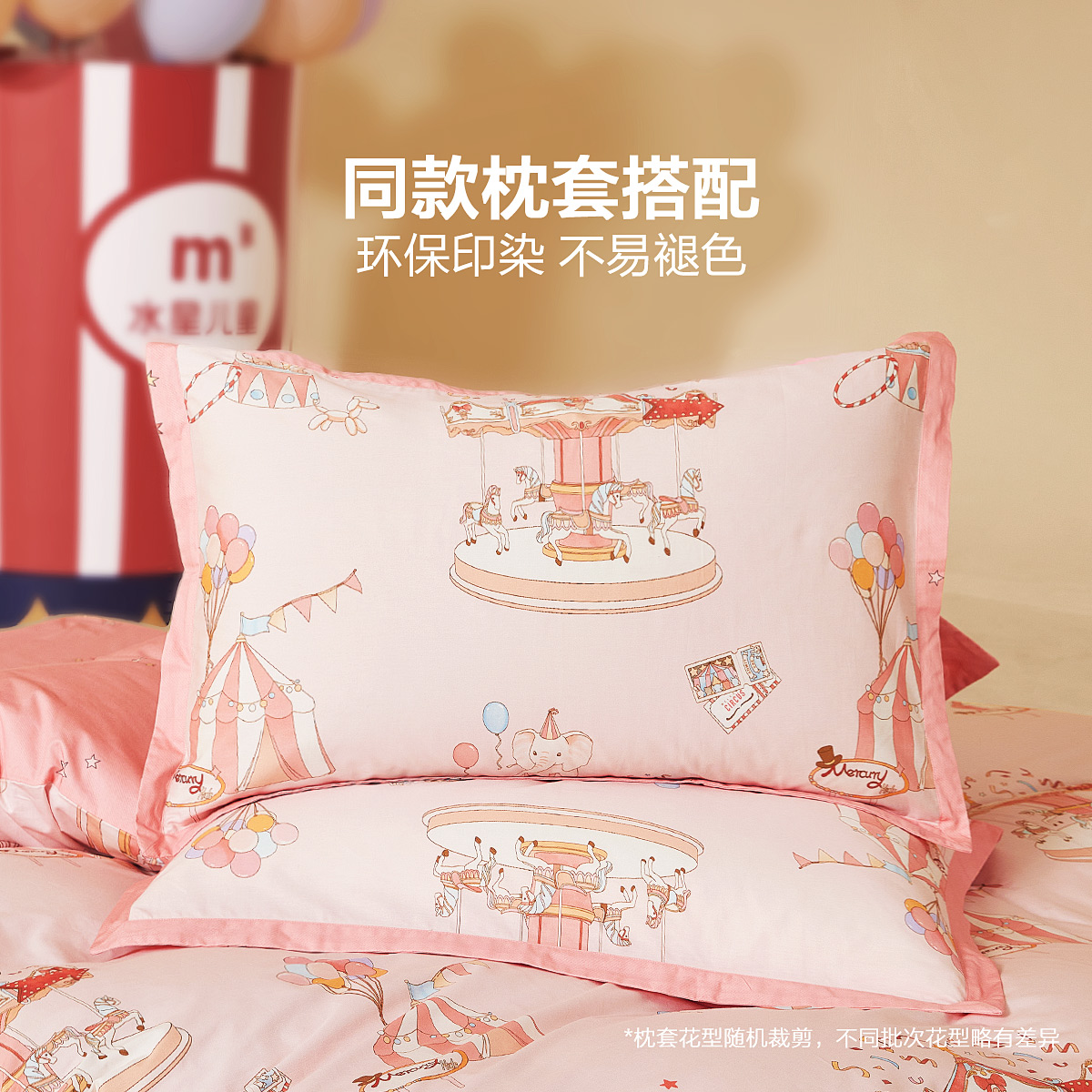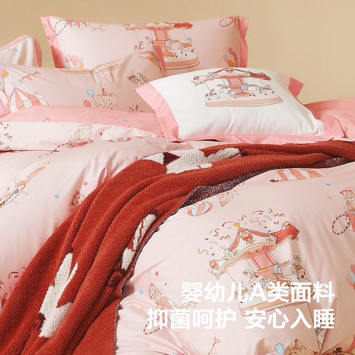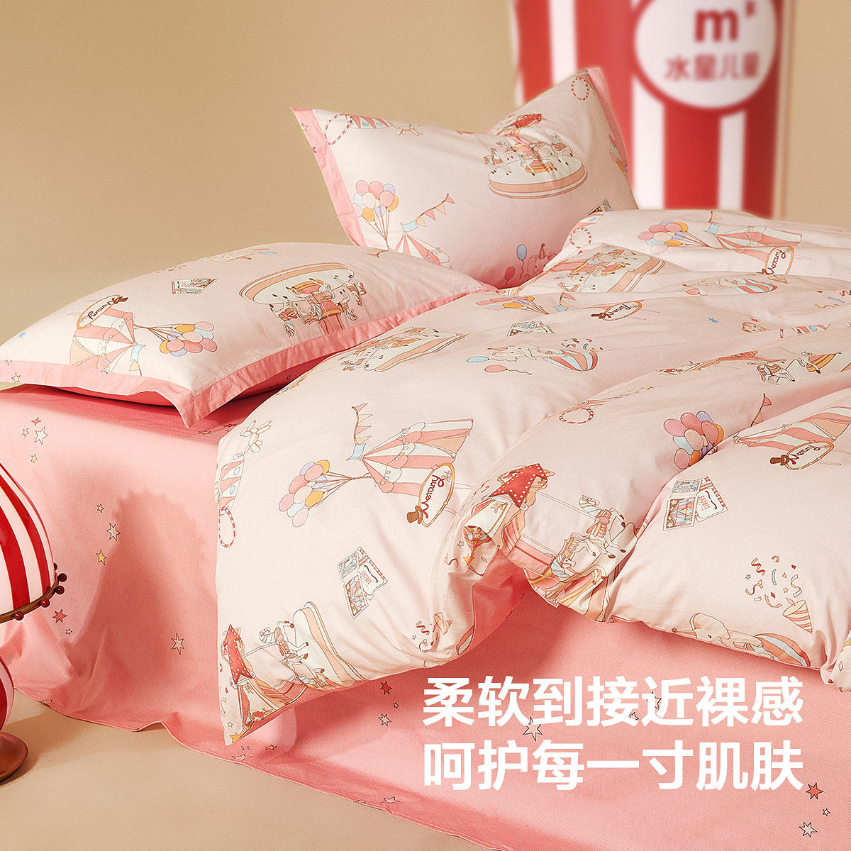 水星家纺儿童三/四件套母婴A类抑菌全棉套件卡通纯棉被套床单床品