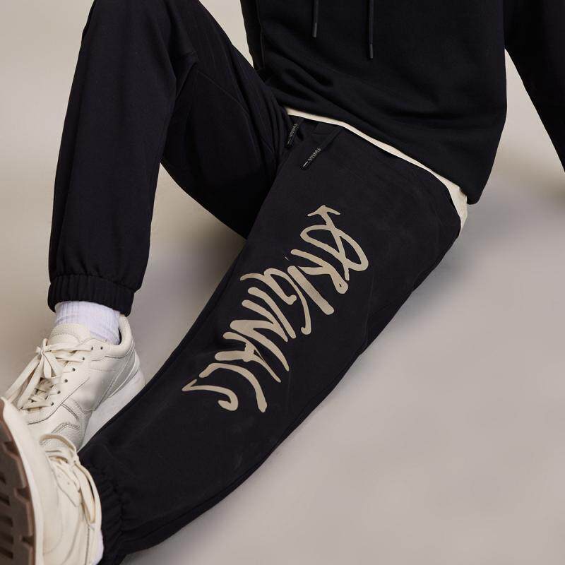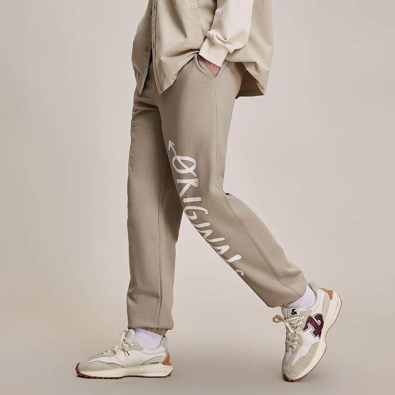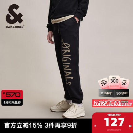 杰克琼斯outlets春季纯棉胶印装饰合体卫裤束脚裤长裤男裤子男装