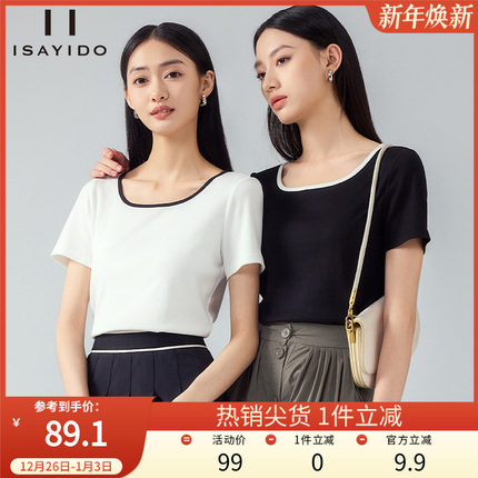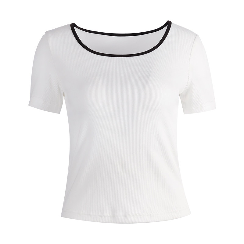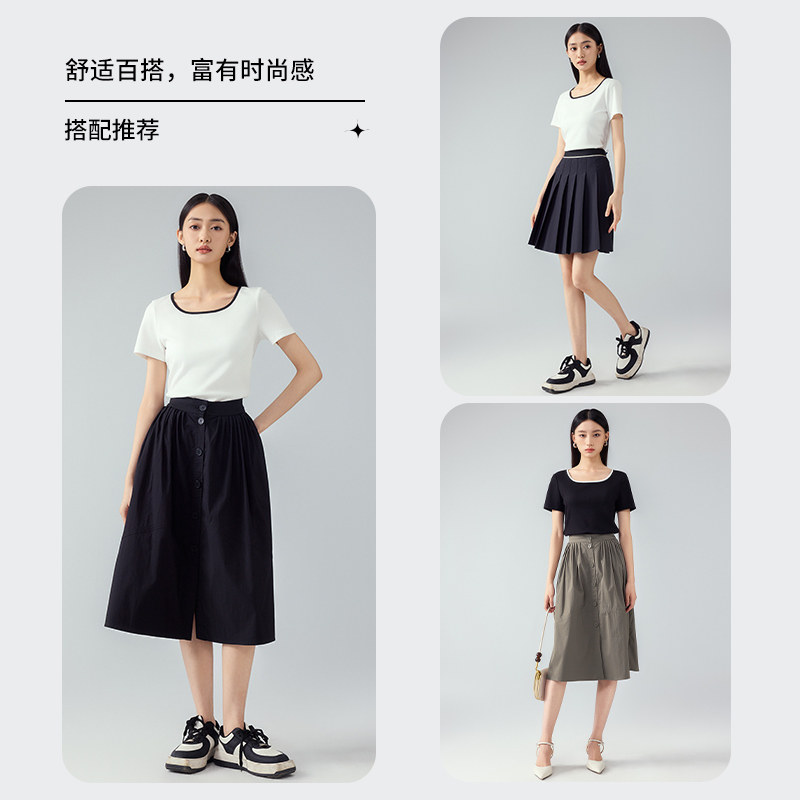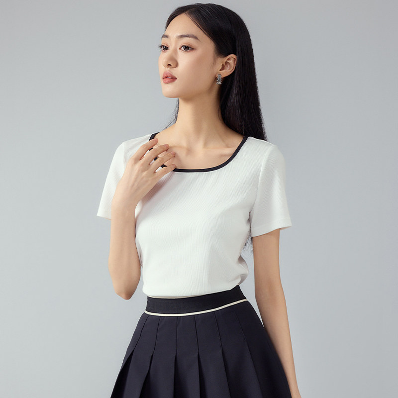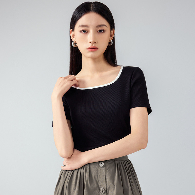 傲丝度夏季方领正肩T恤女简约百搭打底小衫小个子短袖内搭上衣