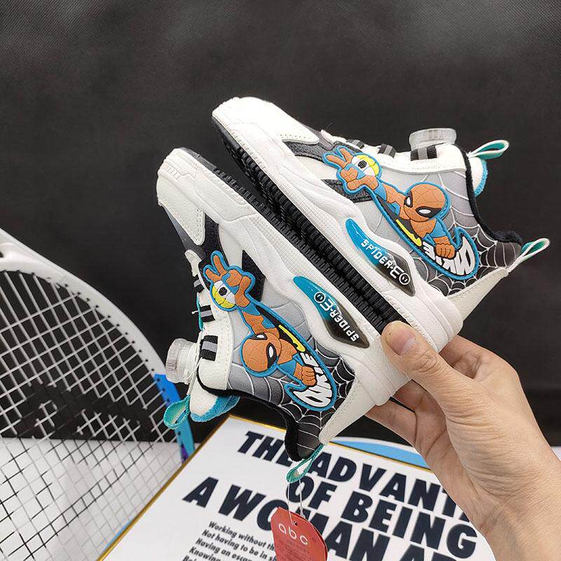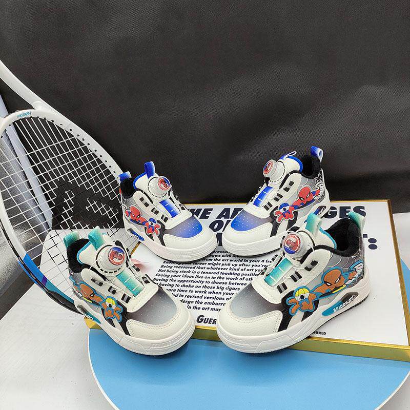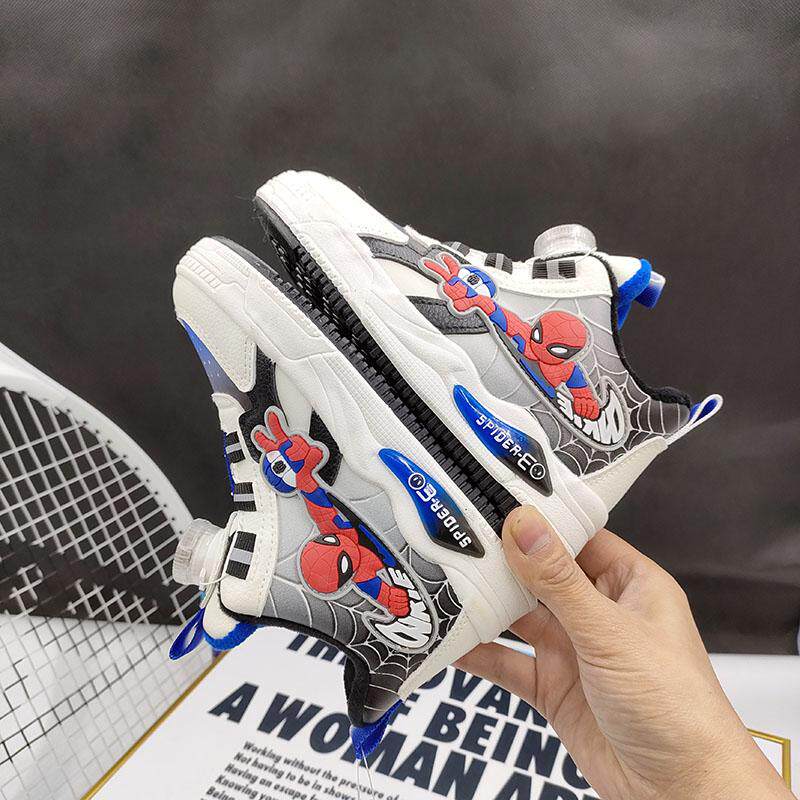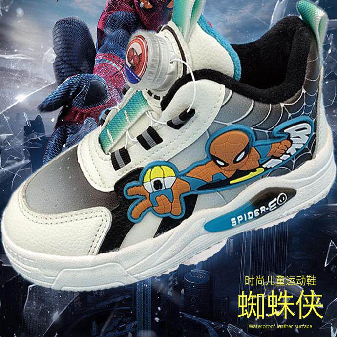 蜘蛛侠闪灯男童加绒运动小板鞋2025冬季小童男孩旋纽扣休闲鞋