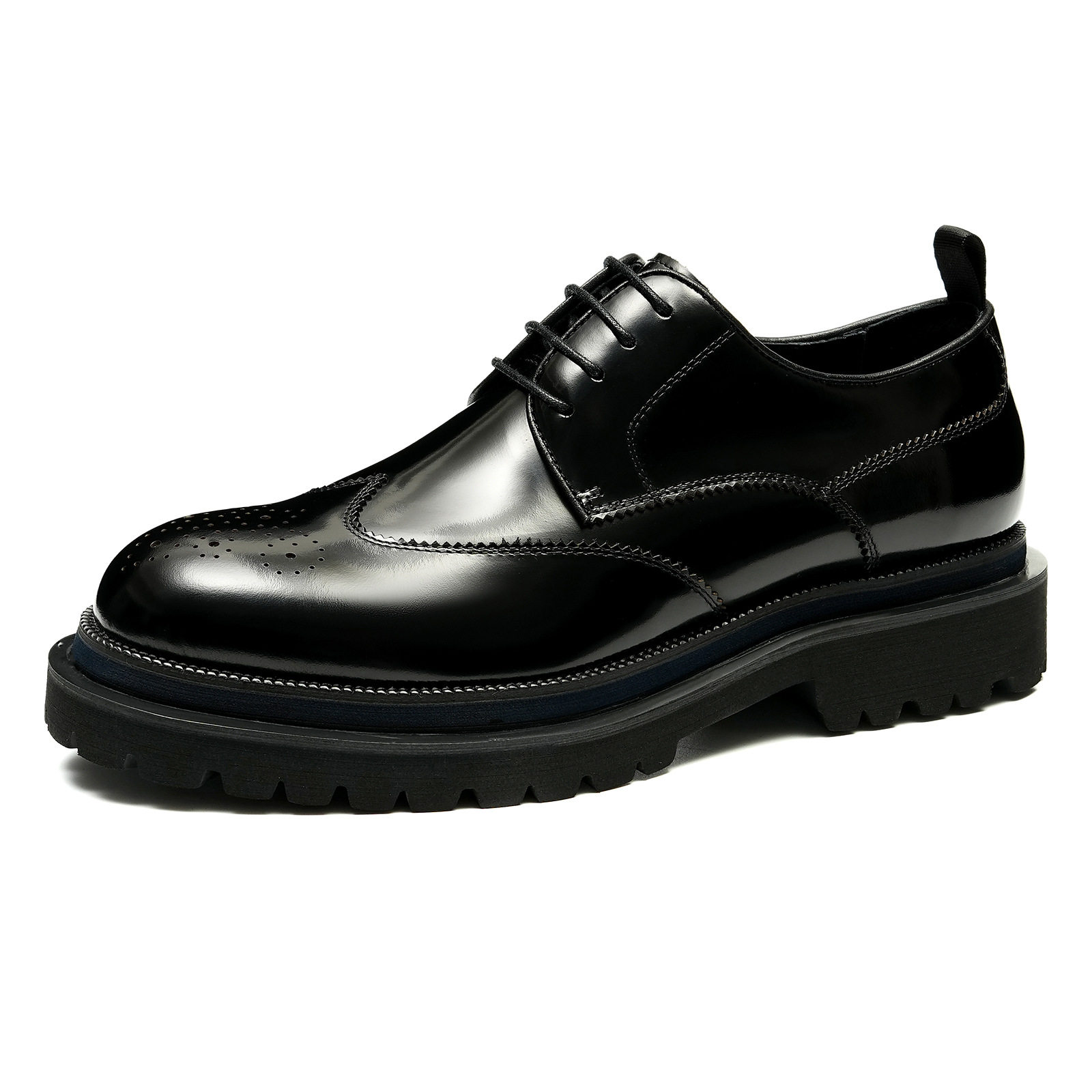 厚底男鞋真皮英伦雕花布洛克尖头商务正装增高皮鞋