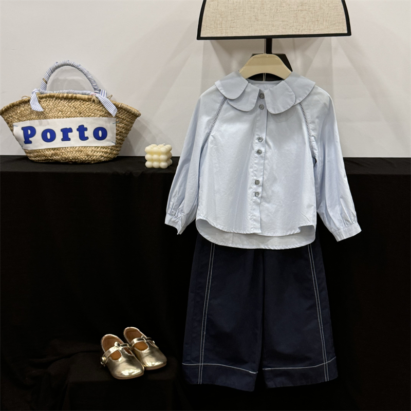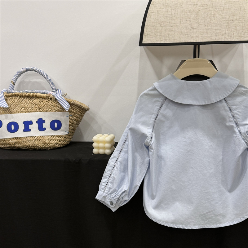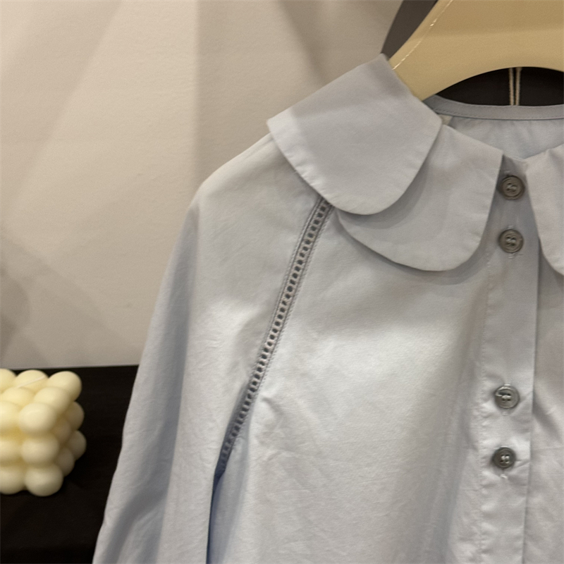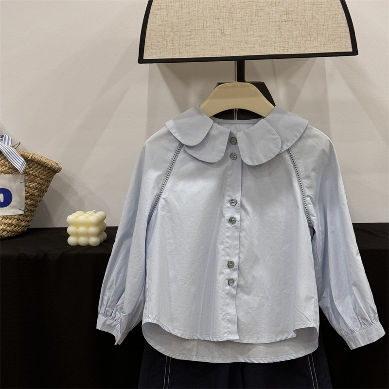 【法式花瓣】童装儿童蓝色衬衫女童纯棉长袖衬衣秋季新款洋气上衣