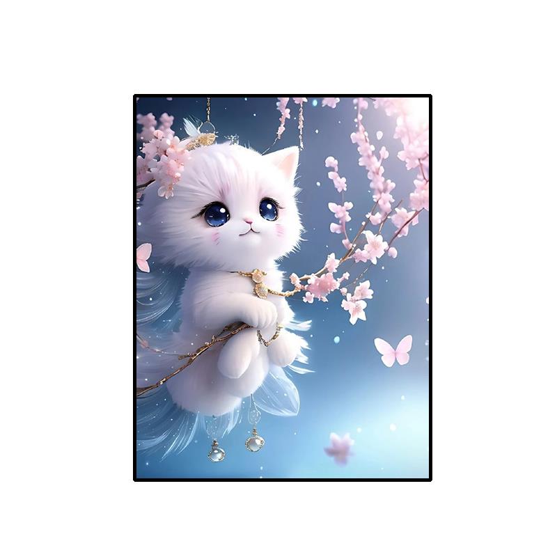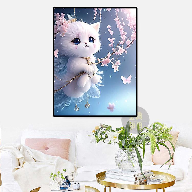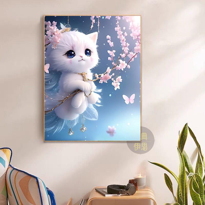 钻石画2024新款可爱卡通桃花猫咪5d手工点贴钻十字绣客厅卧室满钻